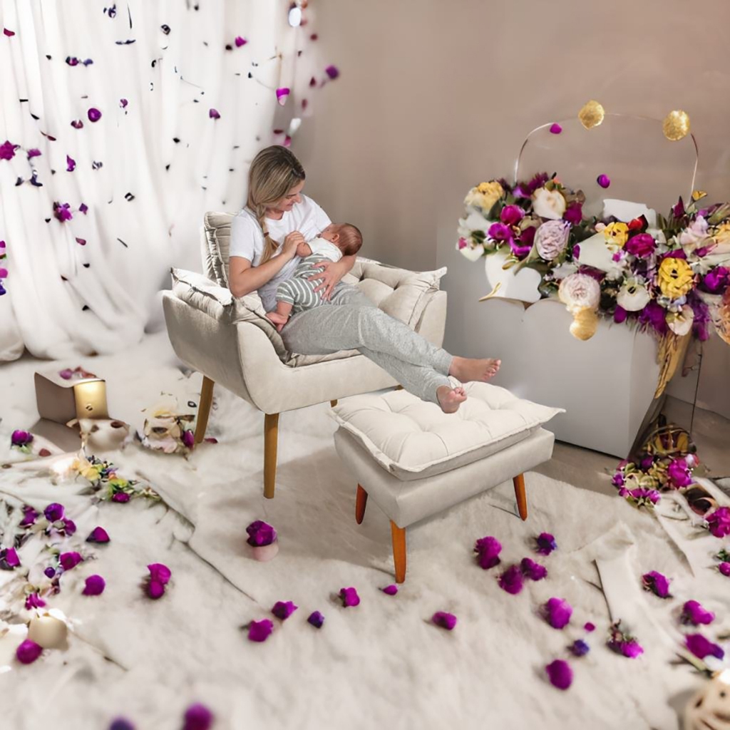 Poltrona Para Amamentação - Poltrona Decorativa - Poltrona com Puff - Poltrona Para Sala De Estar