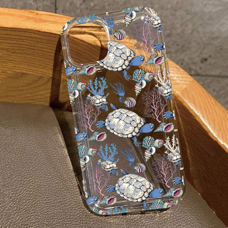 Capa De Telefone Para iPhone 16 15 Pro Max 14 13 12 11 7 8 Plus SE 2020 XS X XR Tartaruga Coral Padrão Claro Macia