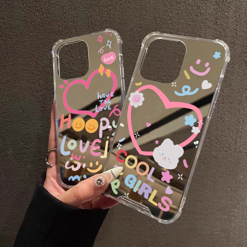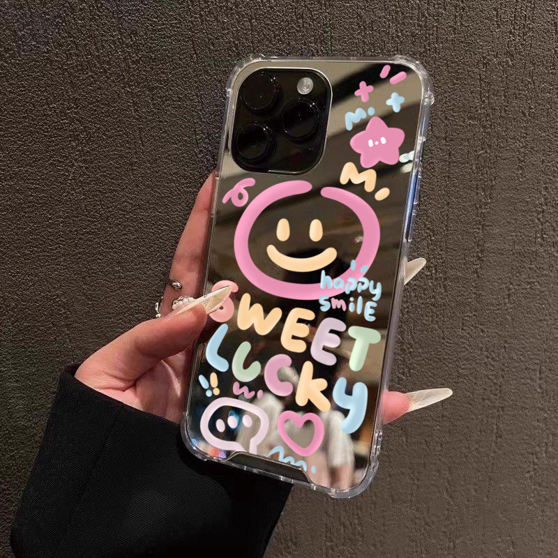 Maquiagem Espelho Caso De Telefone Macio Para iPhone 16 15 Pro Max 14 13 12 11 7 8 Plus SE2 XS X XR Amor Sorridente Coel