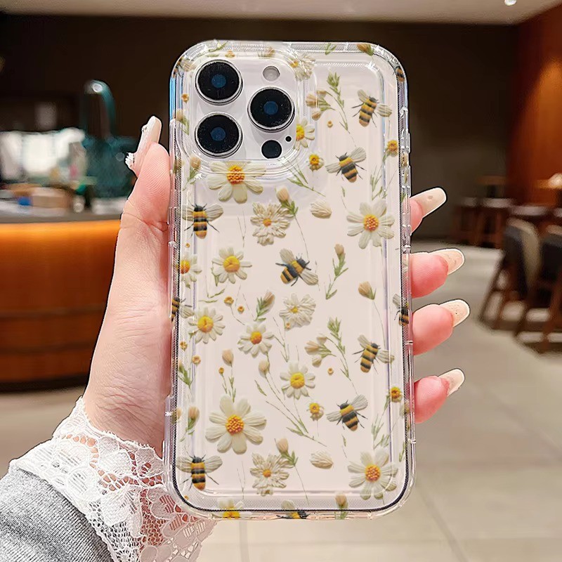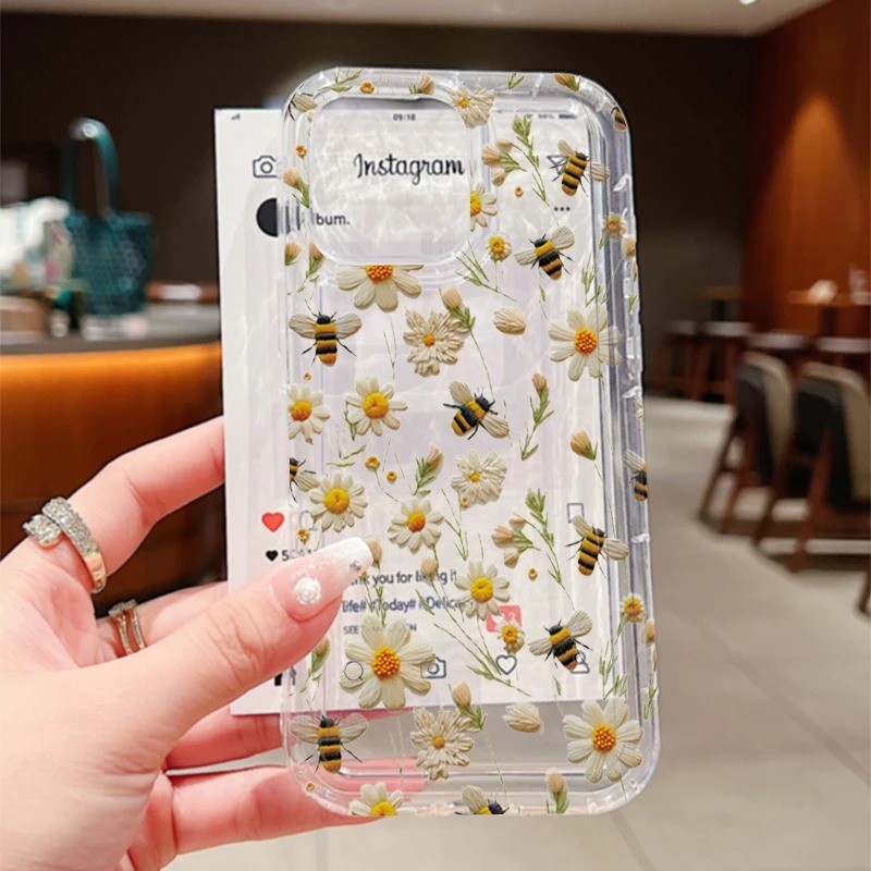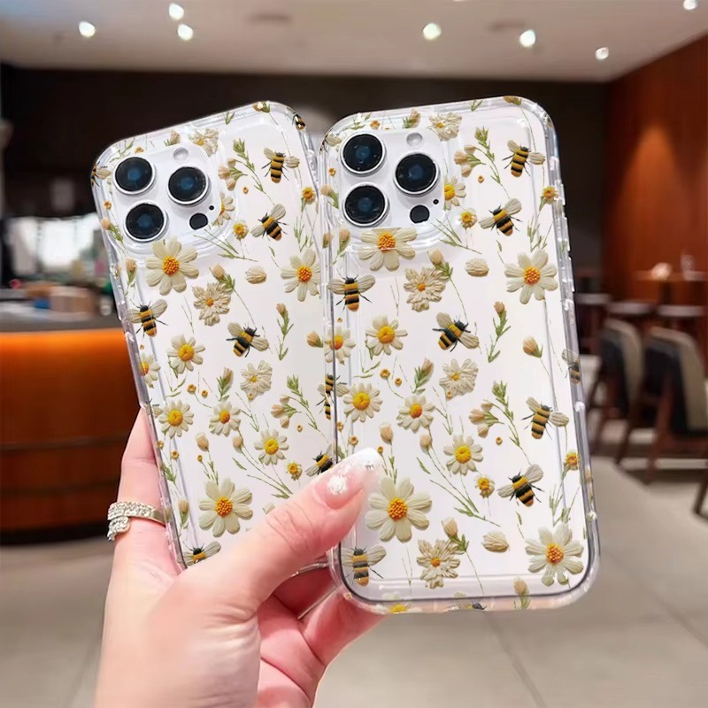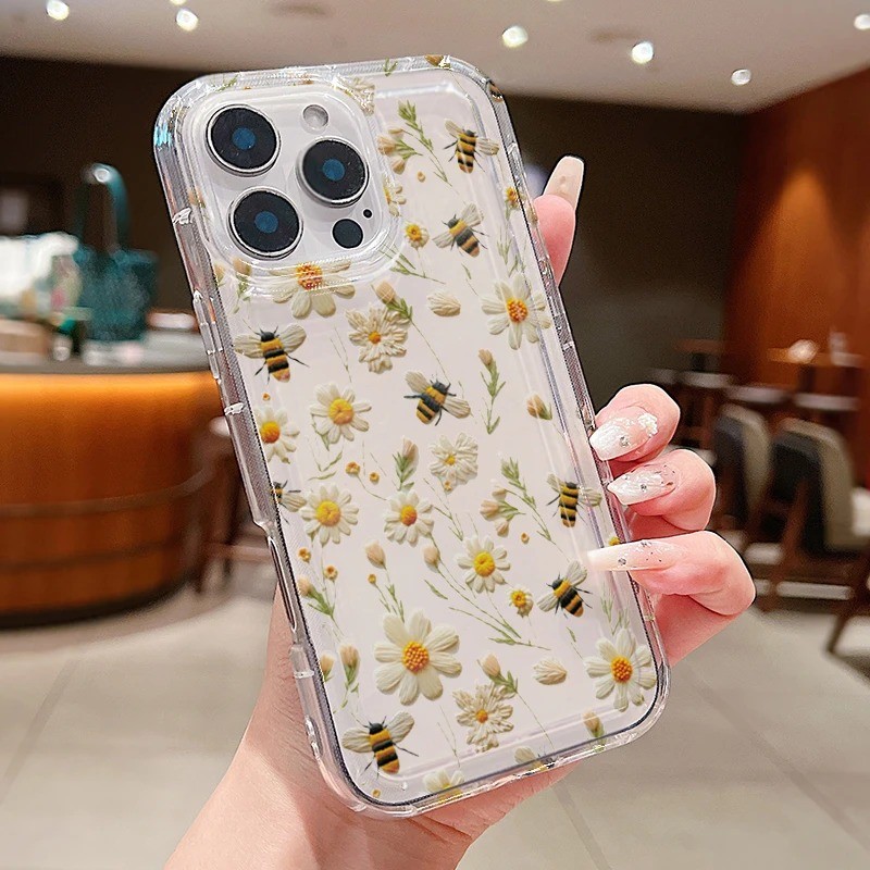 Bonito Abelha Flor Macio Claro Caso De Telefone Para iPhone 16 16E 15 14 13 12 11 Pro Max XS X XR 7 8 Plus SE2 Capa Maci