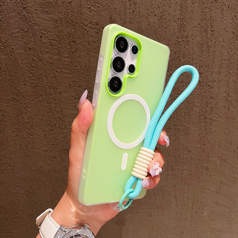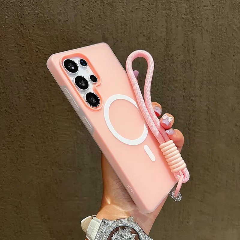 Doce Cor Fosca Para Capa De Telefone Magnética Samsung S24 FE S25 Edge S22 S23 Plus S25 Ultra Com Cordão Macia