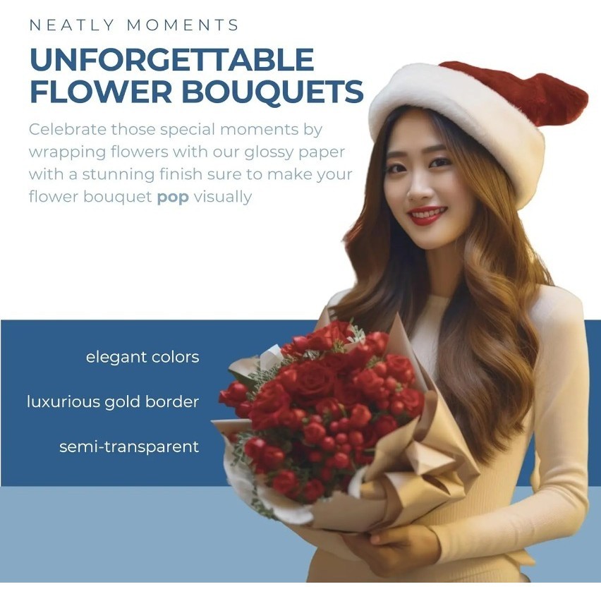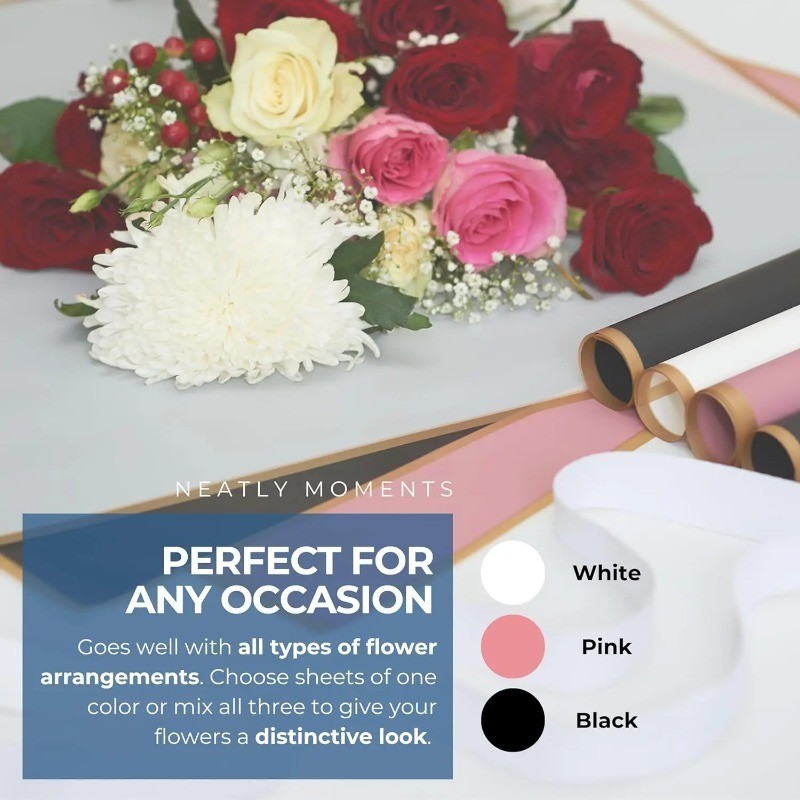 Papel De Embrulho De Flores Rosa De Borda Dourada Estilo Coreano Meio Transparente Material Florista