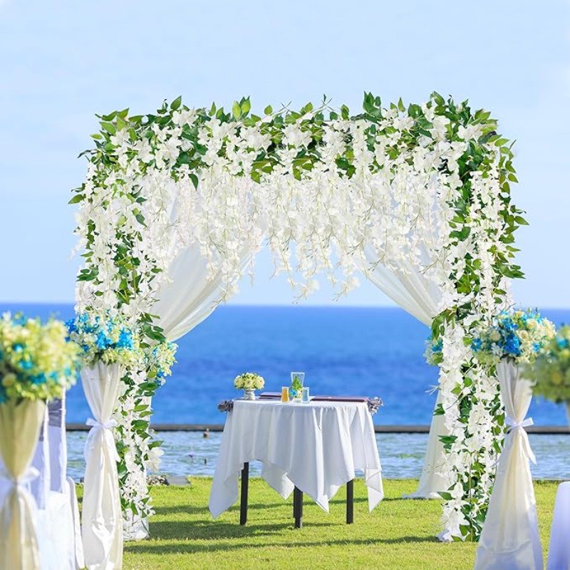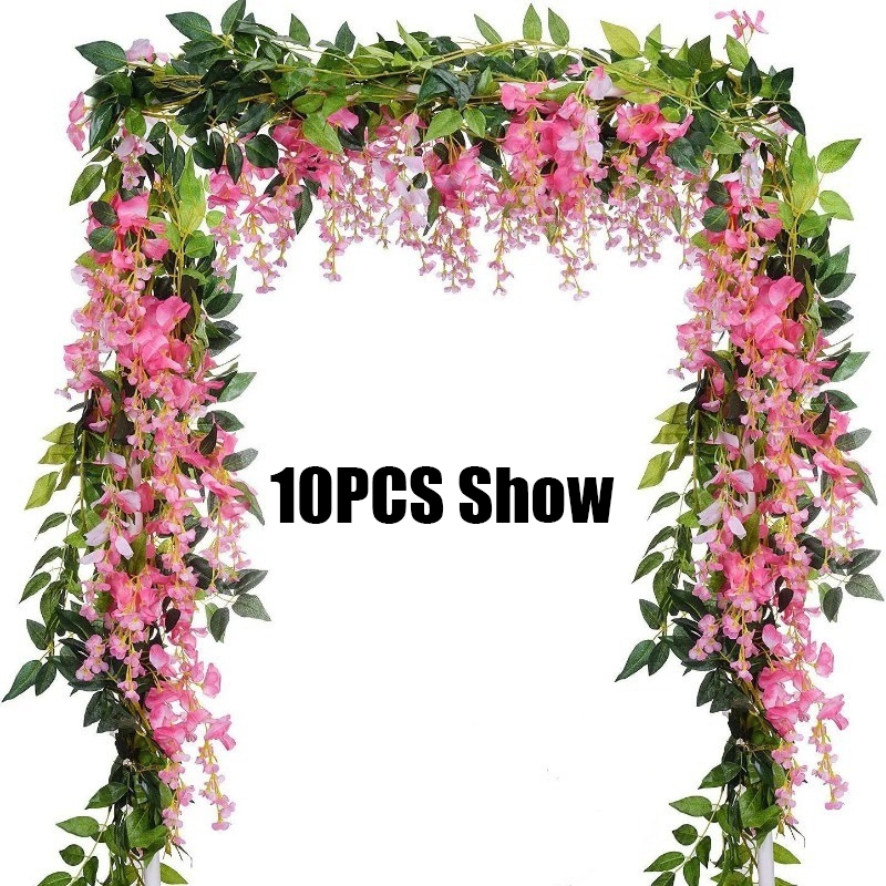 2 Metros Vinha Artificial Wisteria De Seda Pendurada Flor De Folha Falsa Para Jardim Doméstico Cerimônia De Casamento Arco Decoração Floral Festa De Natal