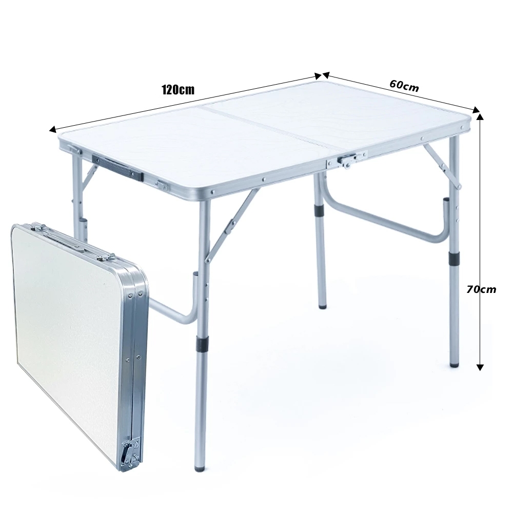 120x60x70CM Mesa Dobrável de Alumínio Portátil Vira Maleta Camping Praia com Tampo de MDF
