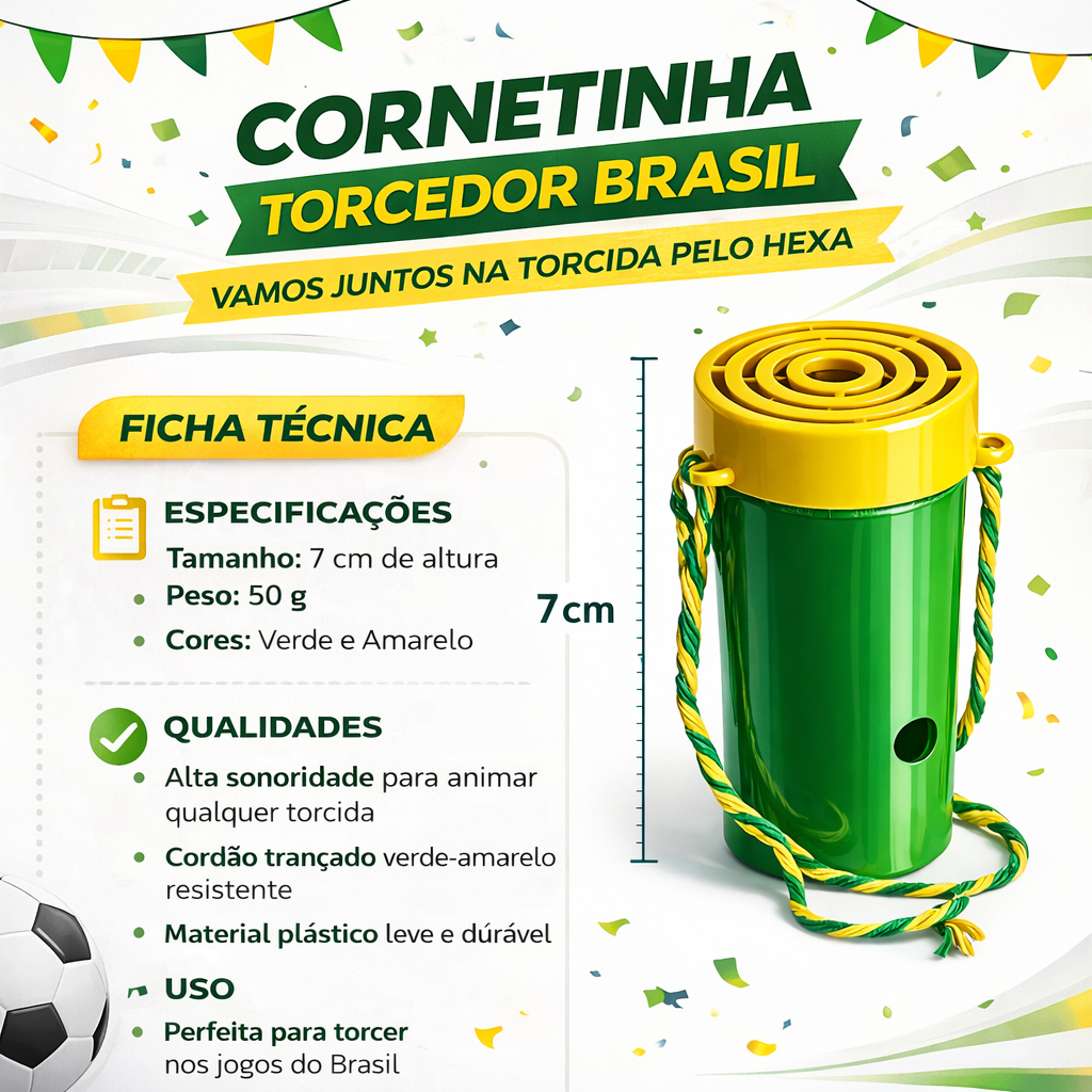 10 Cornetas Brasil Torcida Verde Amarela Copa do Mundo 7cm Leve