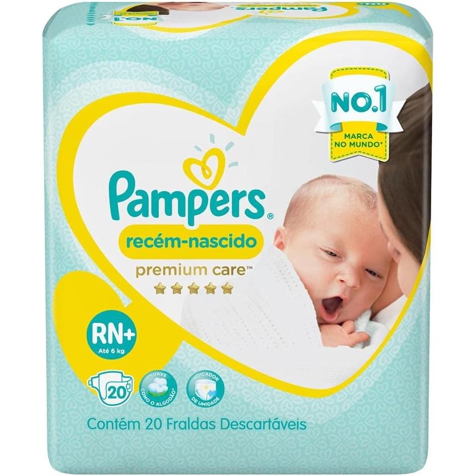 Fraldas Descartáveis Pampers Premium Care Tamanho RN+ - Pacote com 20 Unidades para Recém-Nascidos