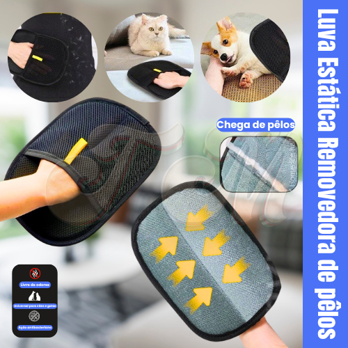 Luva para Remoção de Pelos de Animais de Estimação, Preta Magic Hair Eletrostática - SQ7745