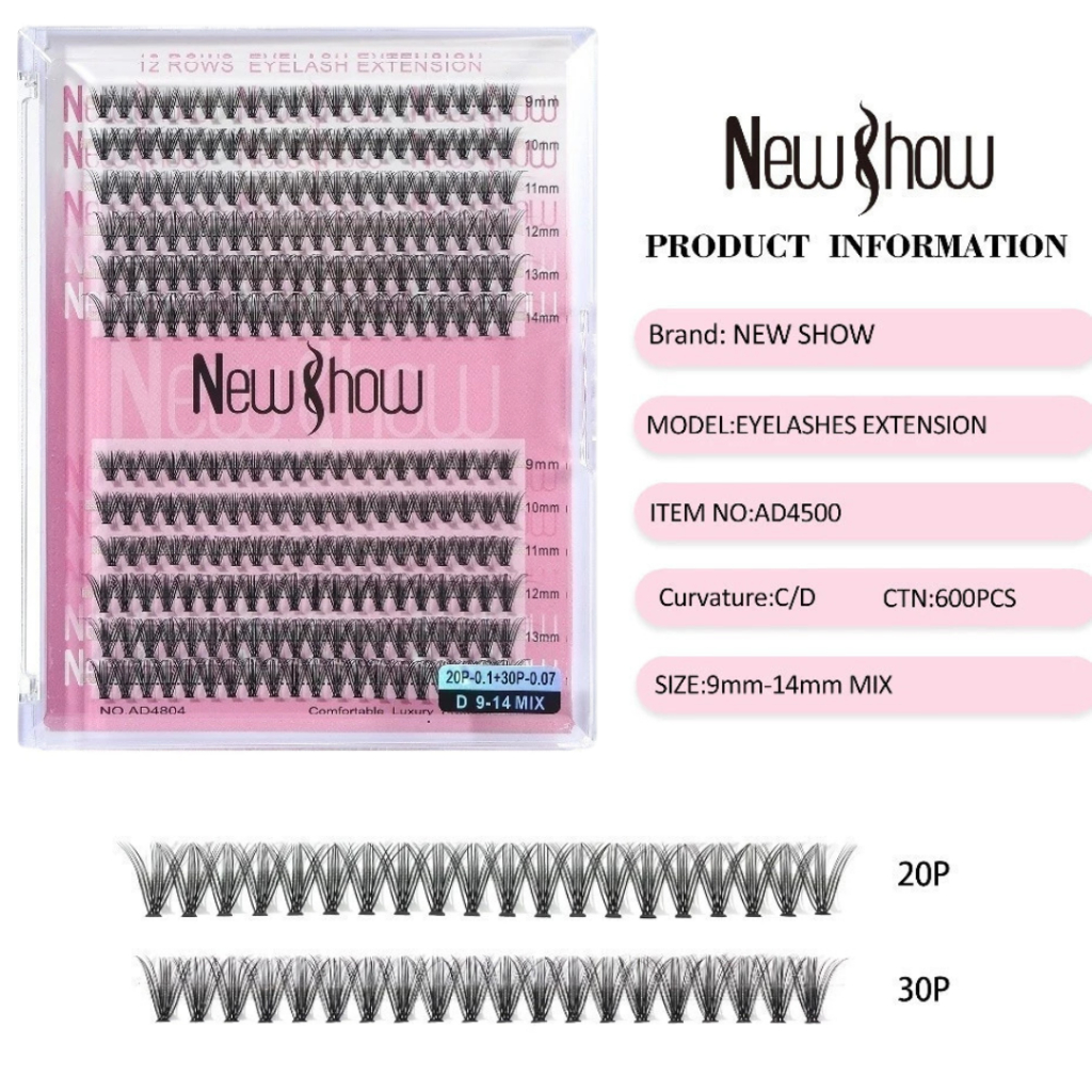 Cílios Postiços Tufo New Show Volume 20P 30P 40P 50P D Curl Mix 9-14mm | Extensão Profissional