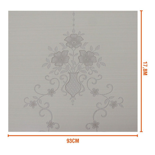 Papel De Parede Branco Cinza Desenho Floral Rolo 93cm X 17,8