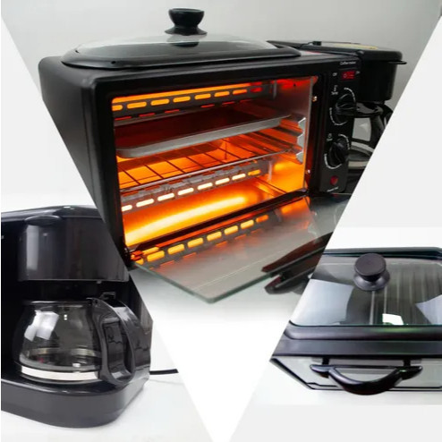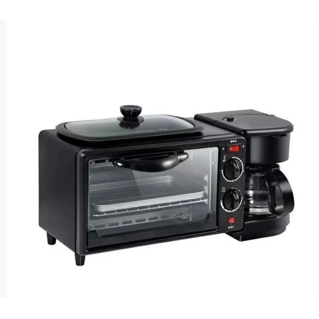 Máquina Café Manhã 3 Em 1 Forno Assar Multifunções Pãezinhos Torradeira Frigideira