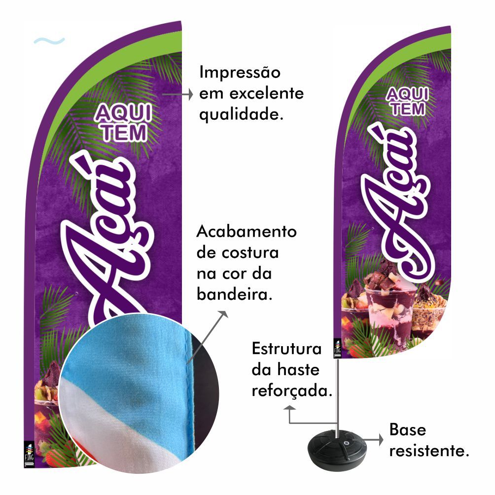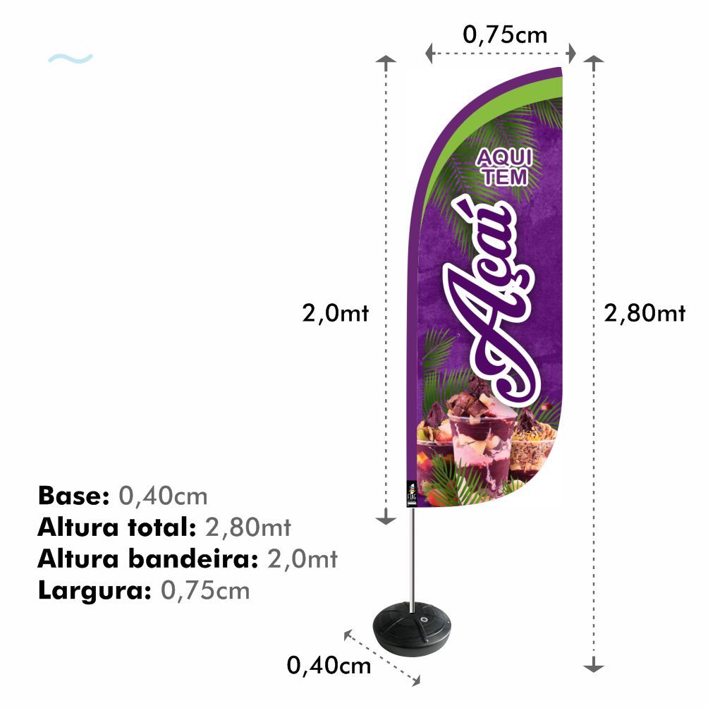 Wind Banner Açai Dupla Face 2,8mt Kit Completo Açaiteria ENVIO EM 24H