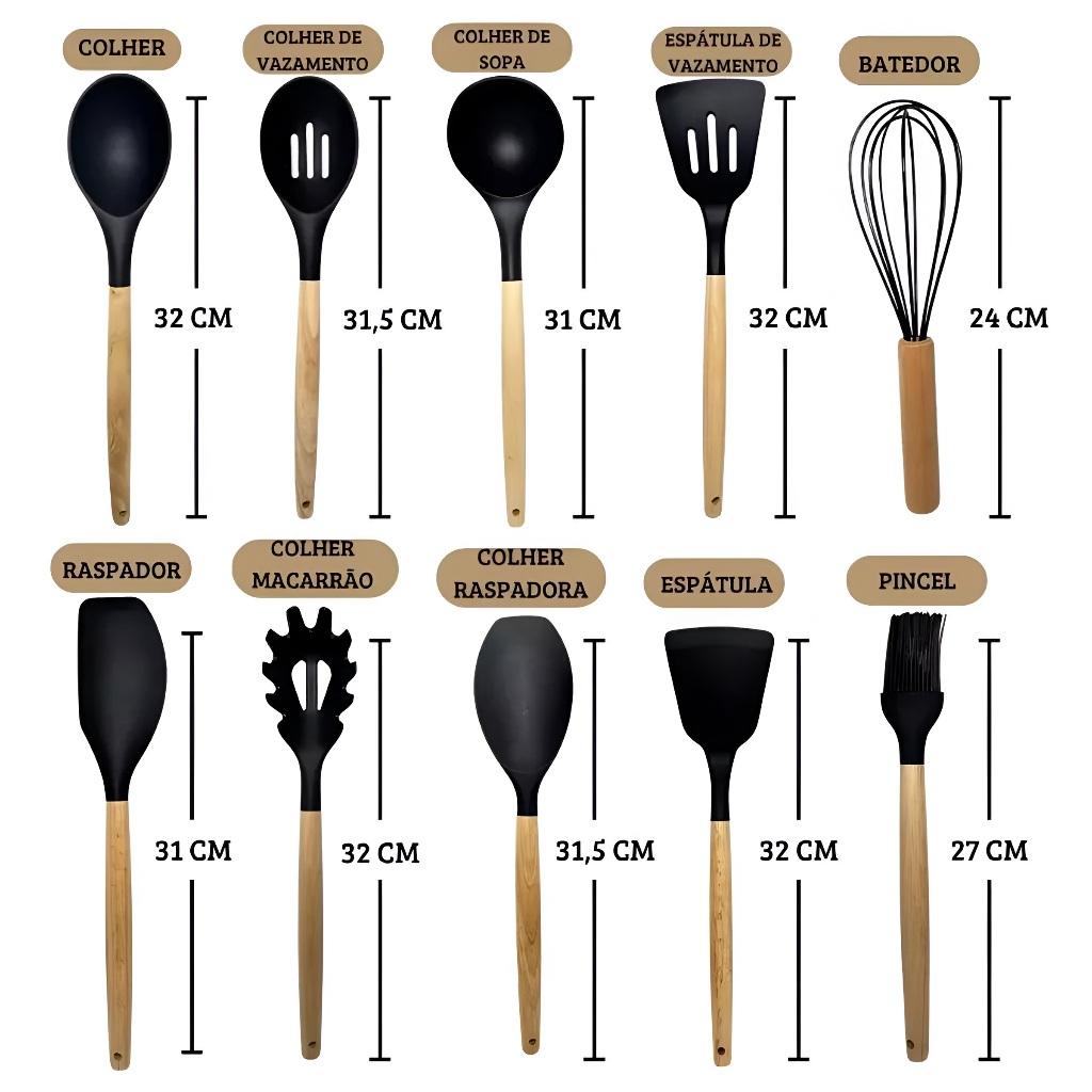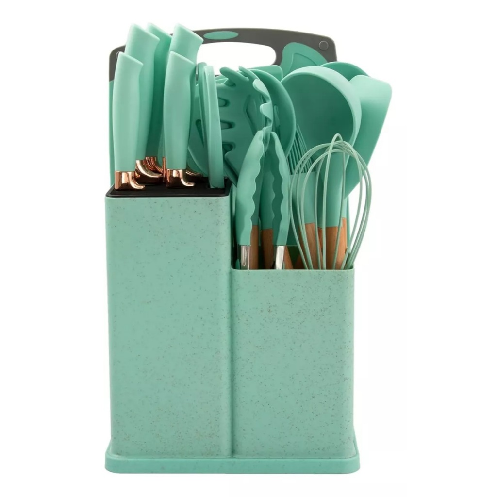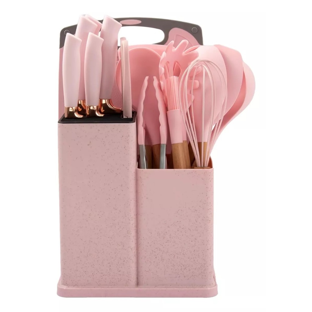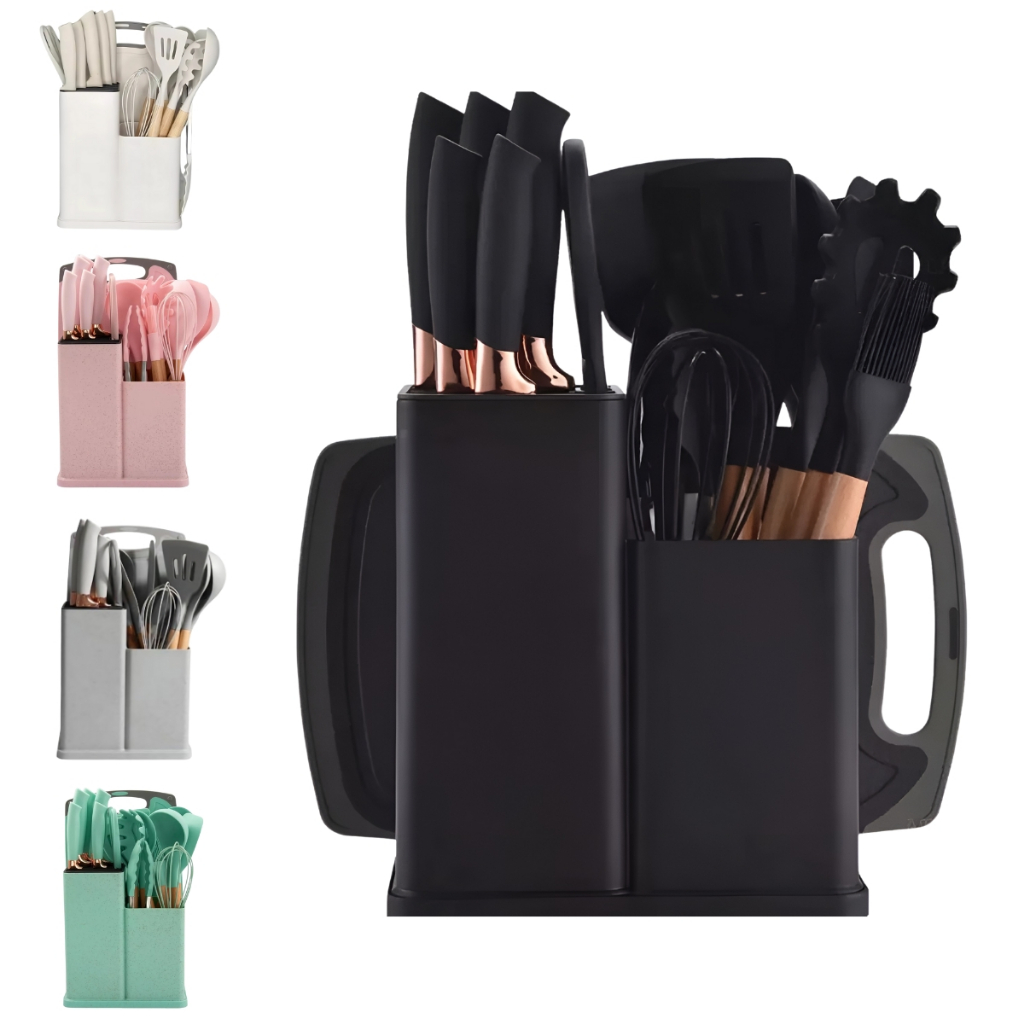 Kit Utensílios 19 Peças Luxo – Tábua, Faca, Espátula e Tesoura Inclusas
