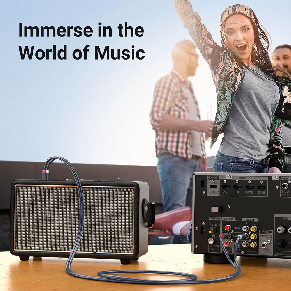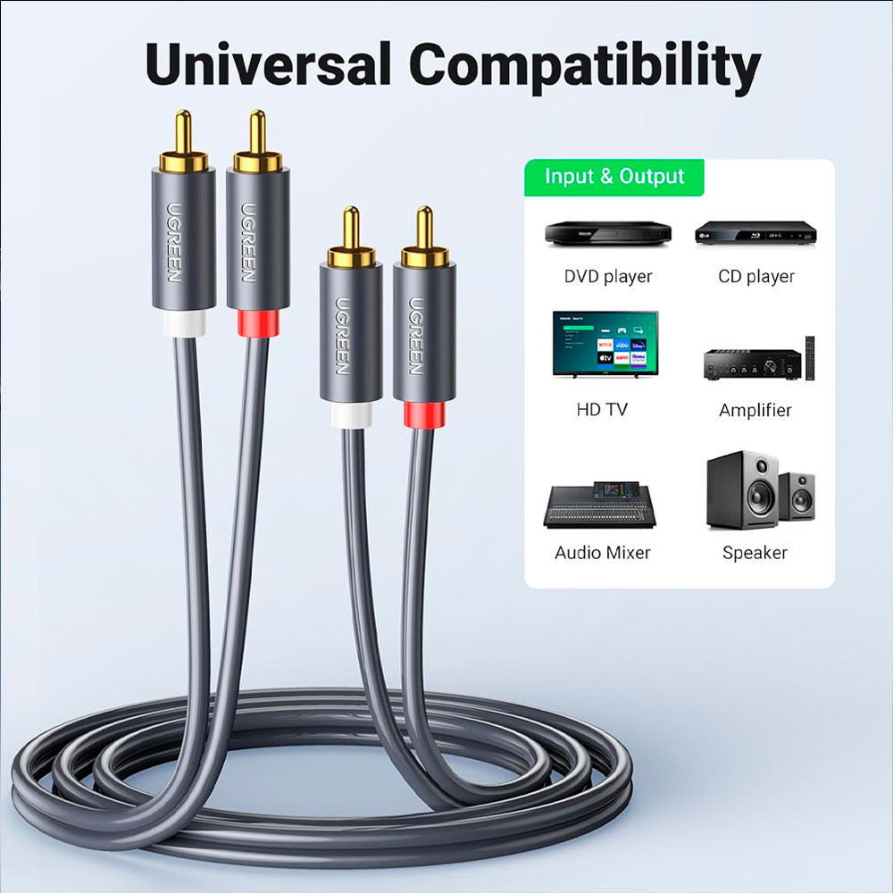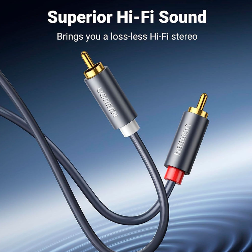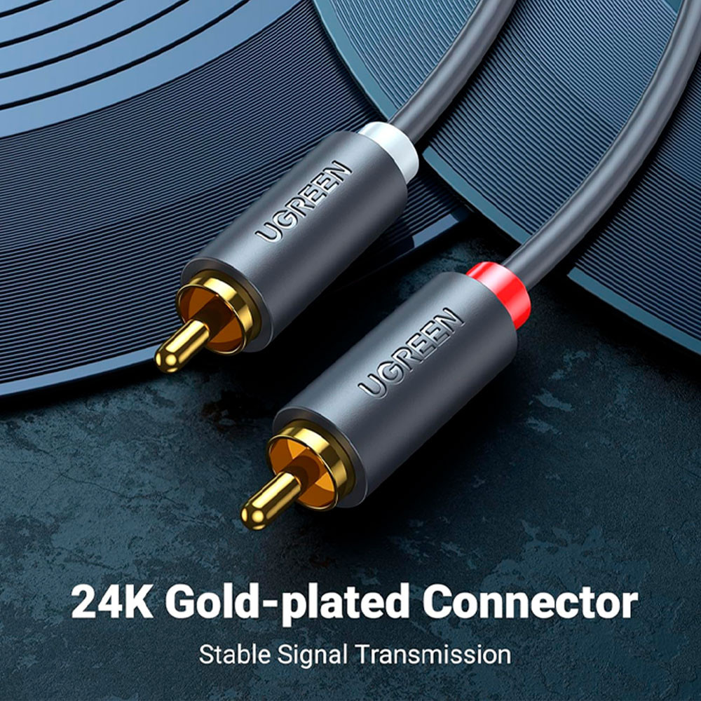 Cabo de Áudio Ugreen 2Rca para 2Rca Macho 2 Metros Preto