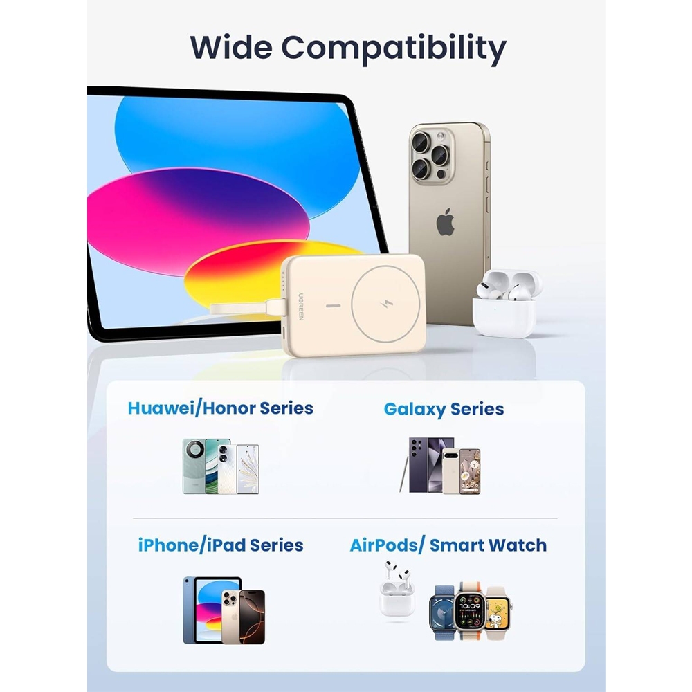 Power Bank Magnética Ugreen 10000mAh Portátil 20W Bege