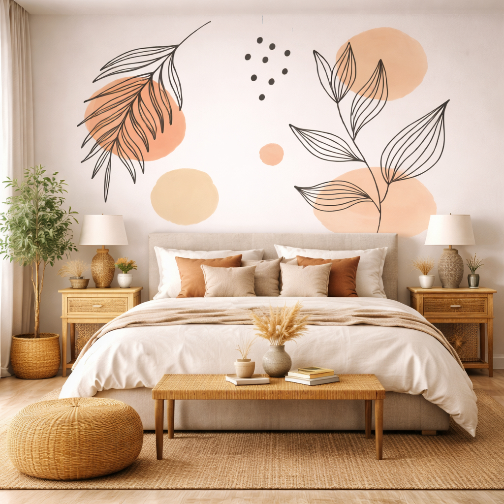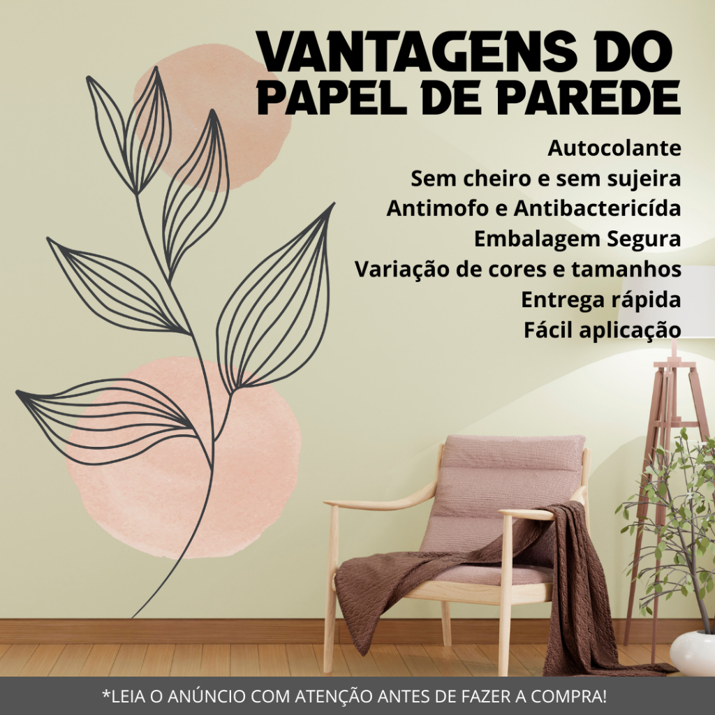 Papel De Parede Floral Ramos Boho Neutro Moderno Decoração Sala Quarto Cozinha Fácil Aplicação