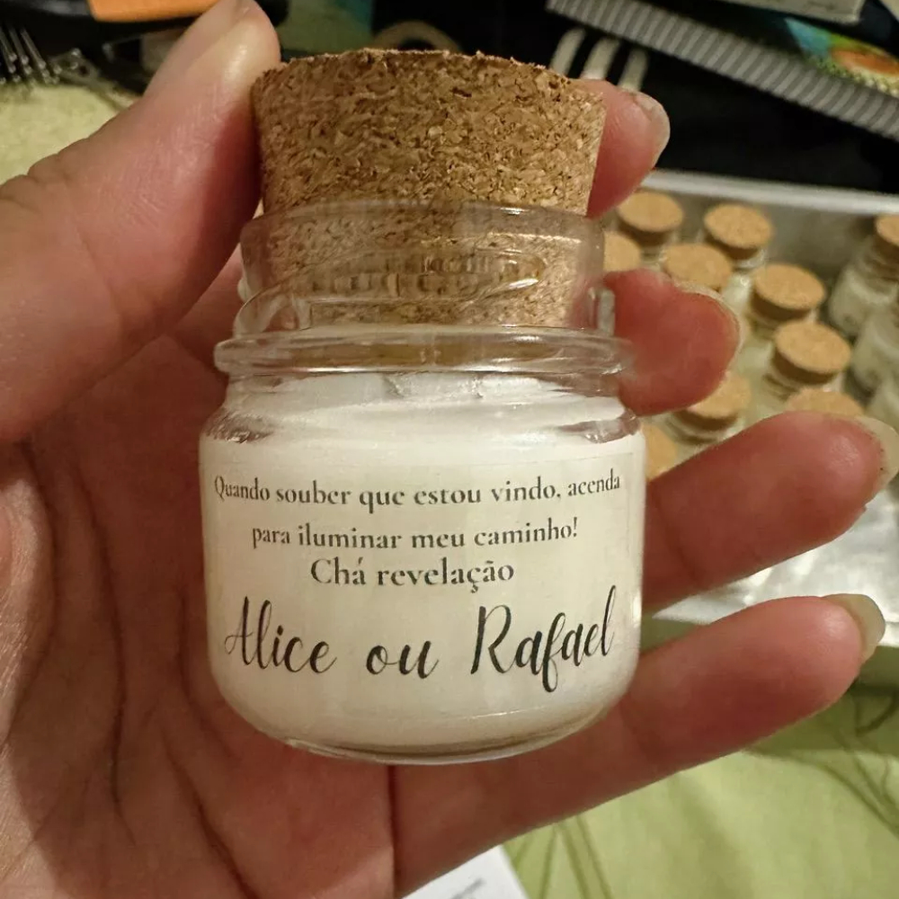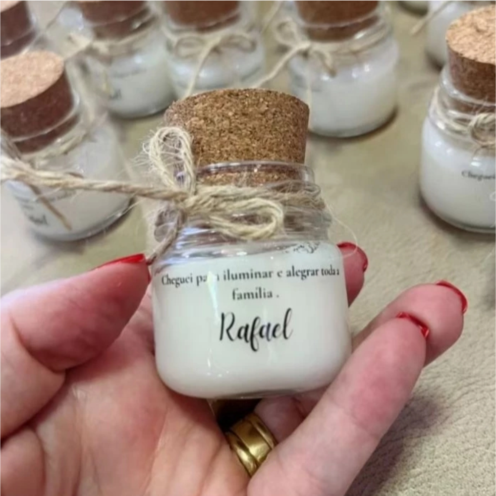 Kit Potinho tampa rolha 40ml + Adesivo Personalizado Chá de Bebê Casamento Batizado Lembrancinha