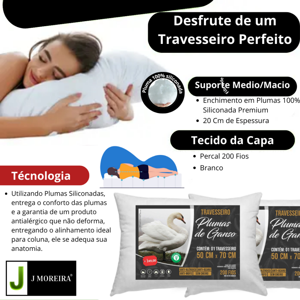 Travesseiro Pena de Ganso Pluma de Ganso Alto Macio Antialergico Ortopedico Original