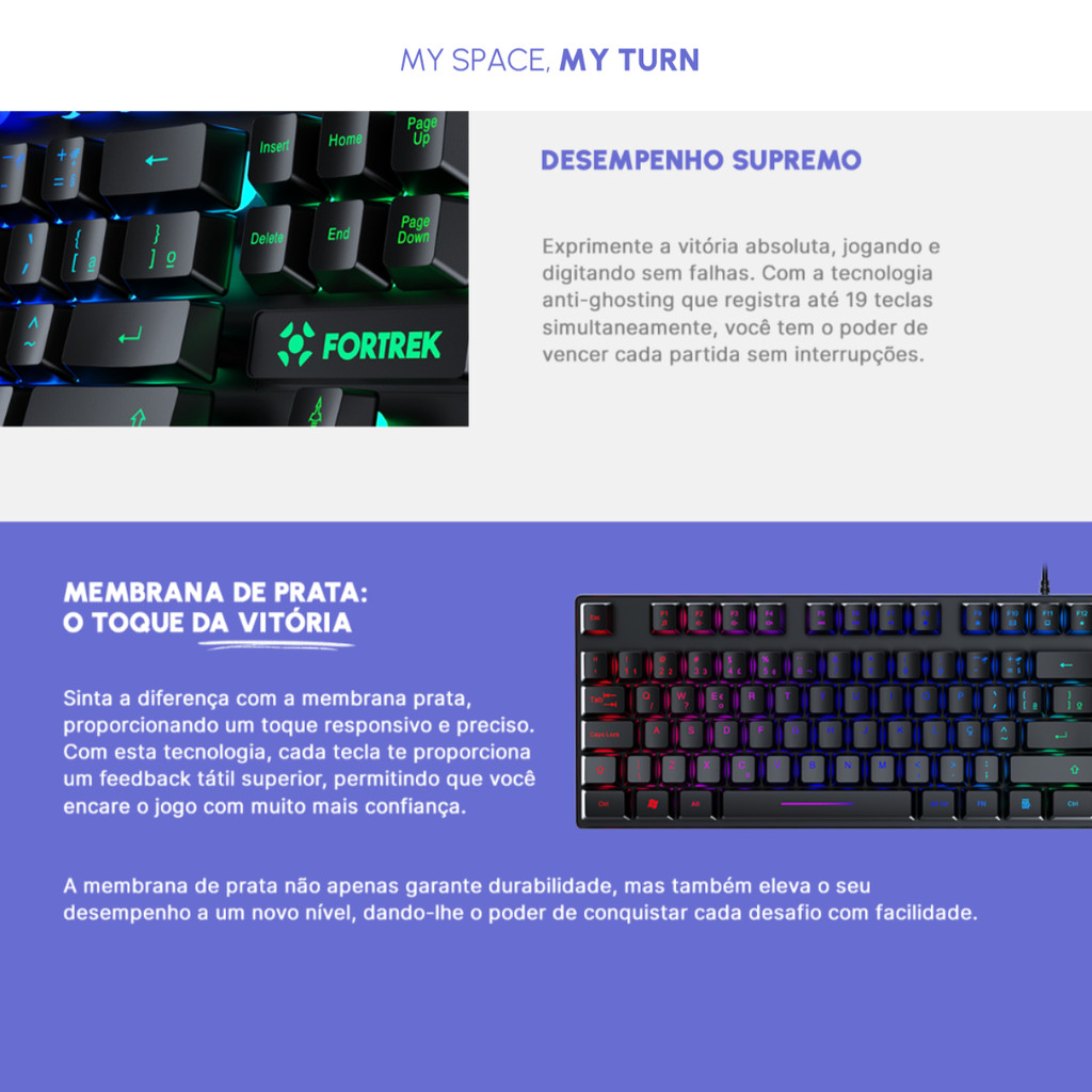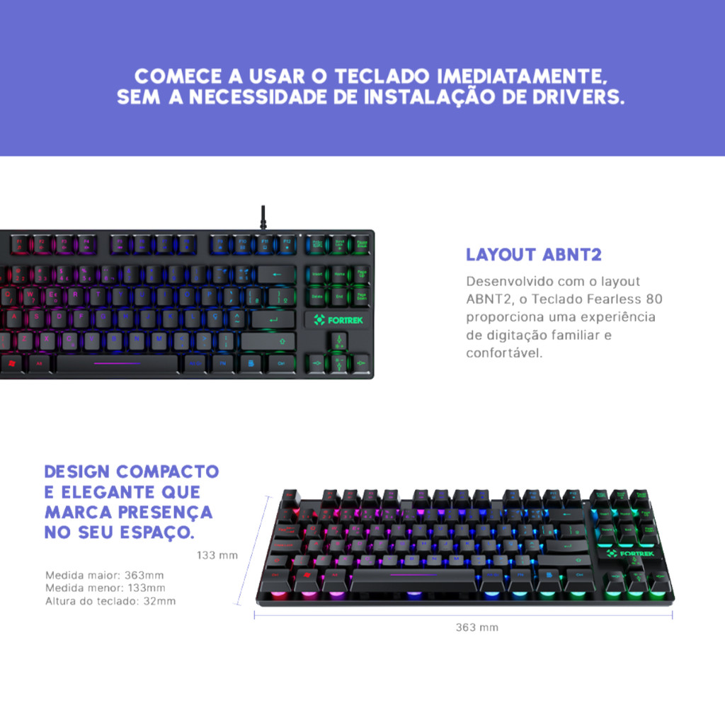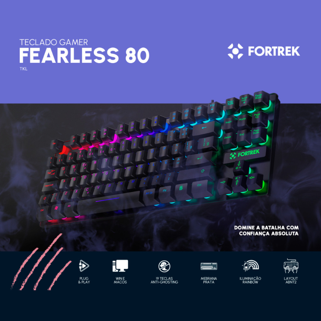 Teclado Gamer Fortrek Fearless 80 Black RGB Edition TKL