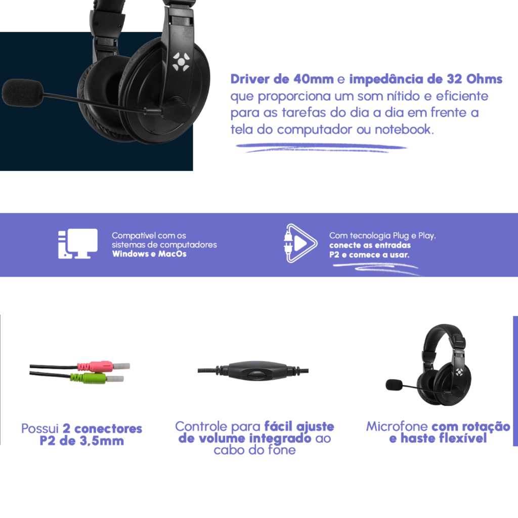 Fone de ouvido Headfone Over-Ear Gamer Fortrek HSL-102 Preto