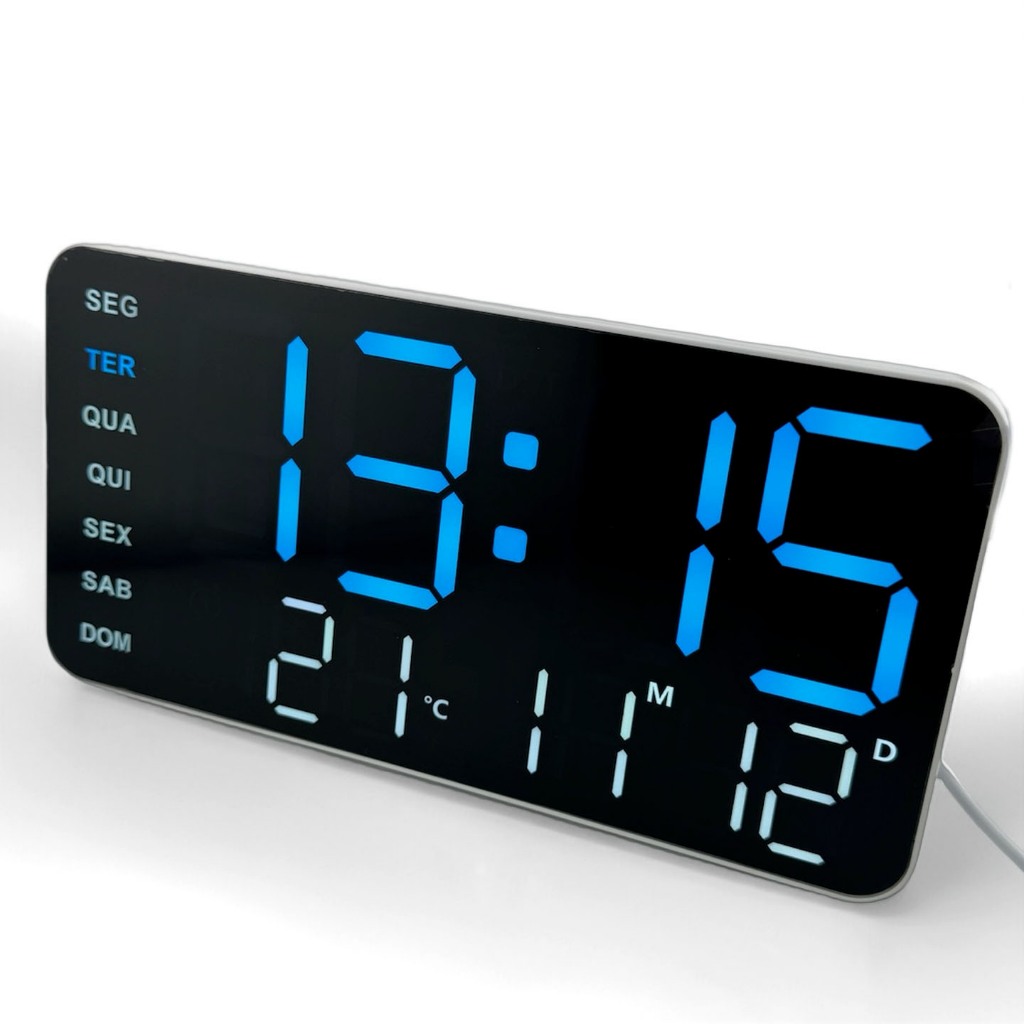 Relógio Digital LED De Parede E Mesa Calendário Alarme Data Temperatura