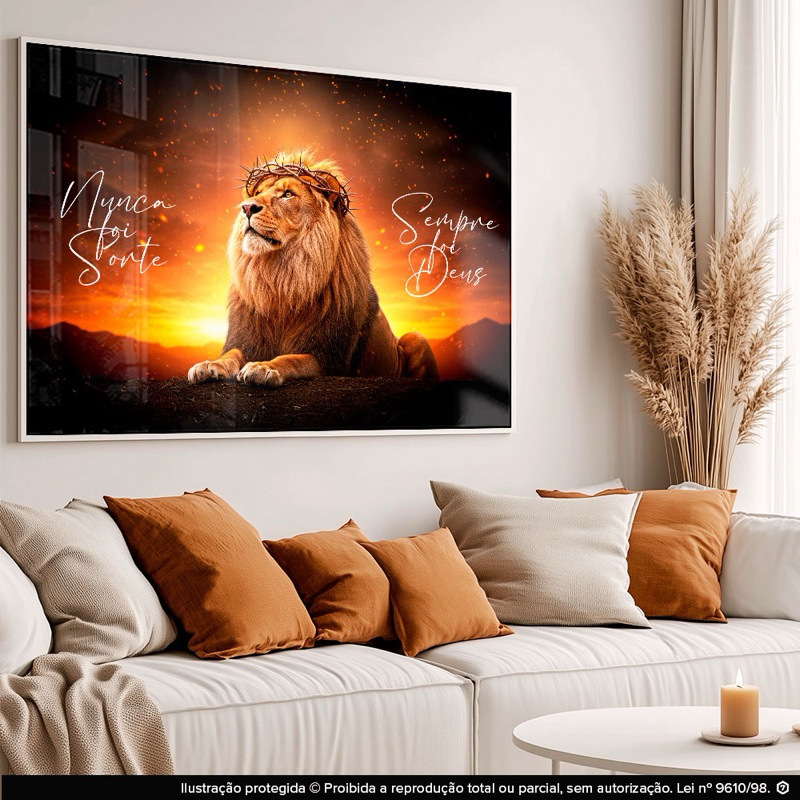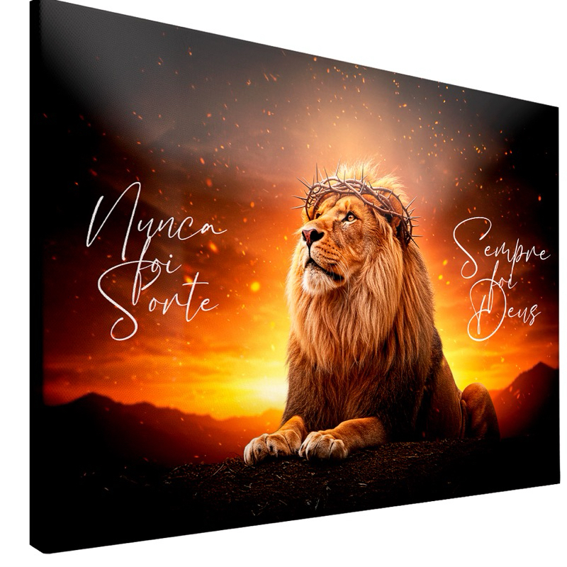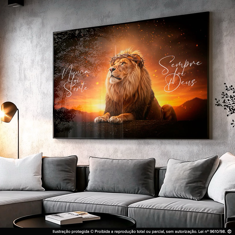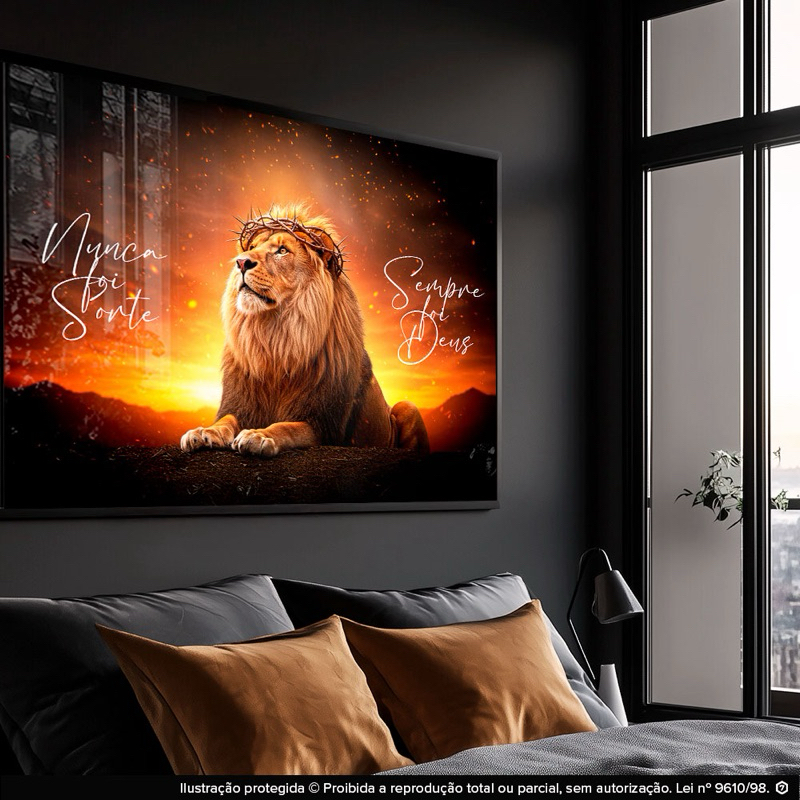 Quadro Decorativo Leão Coroa Frase Nunca Foi Sorte Fundo Fogo Sala Quarto Hall
