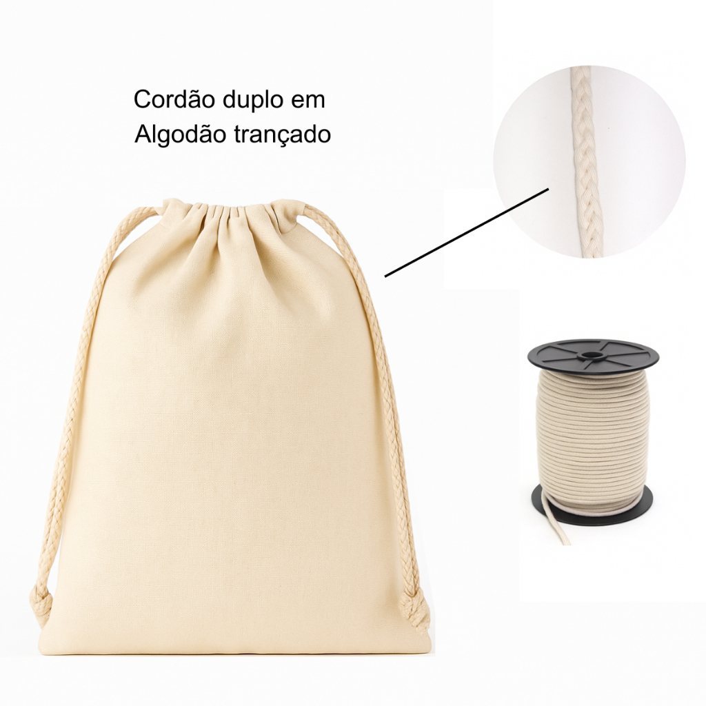 Saquinho Ecobag 20LargX25Alt 100% Algodão Cru Sem Estampa