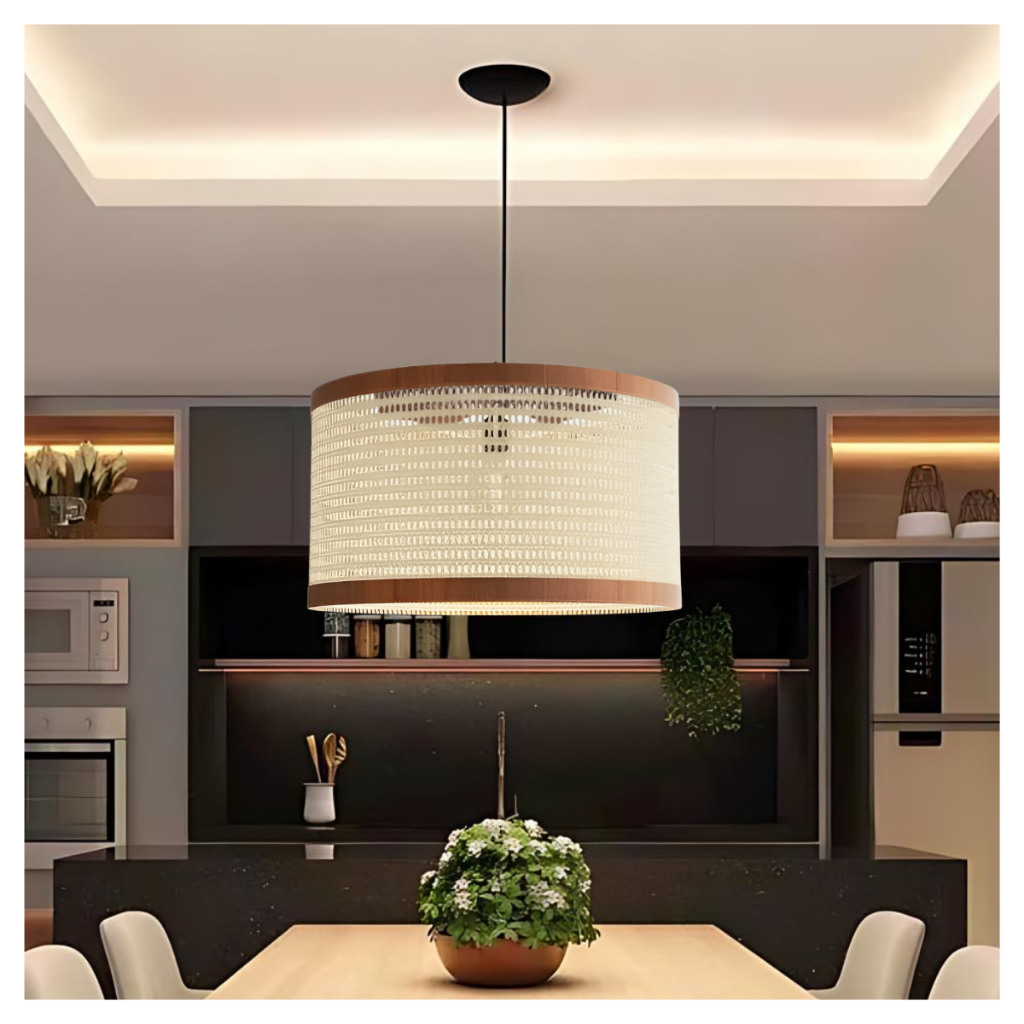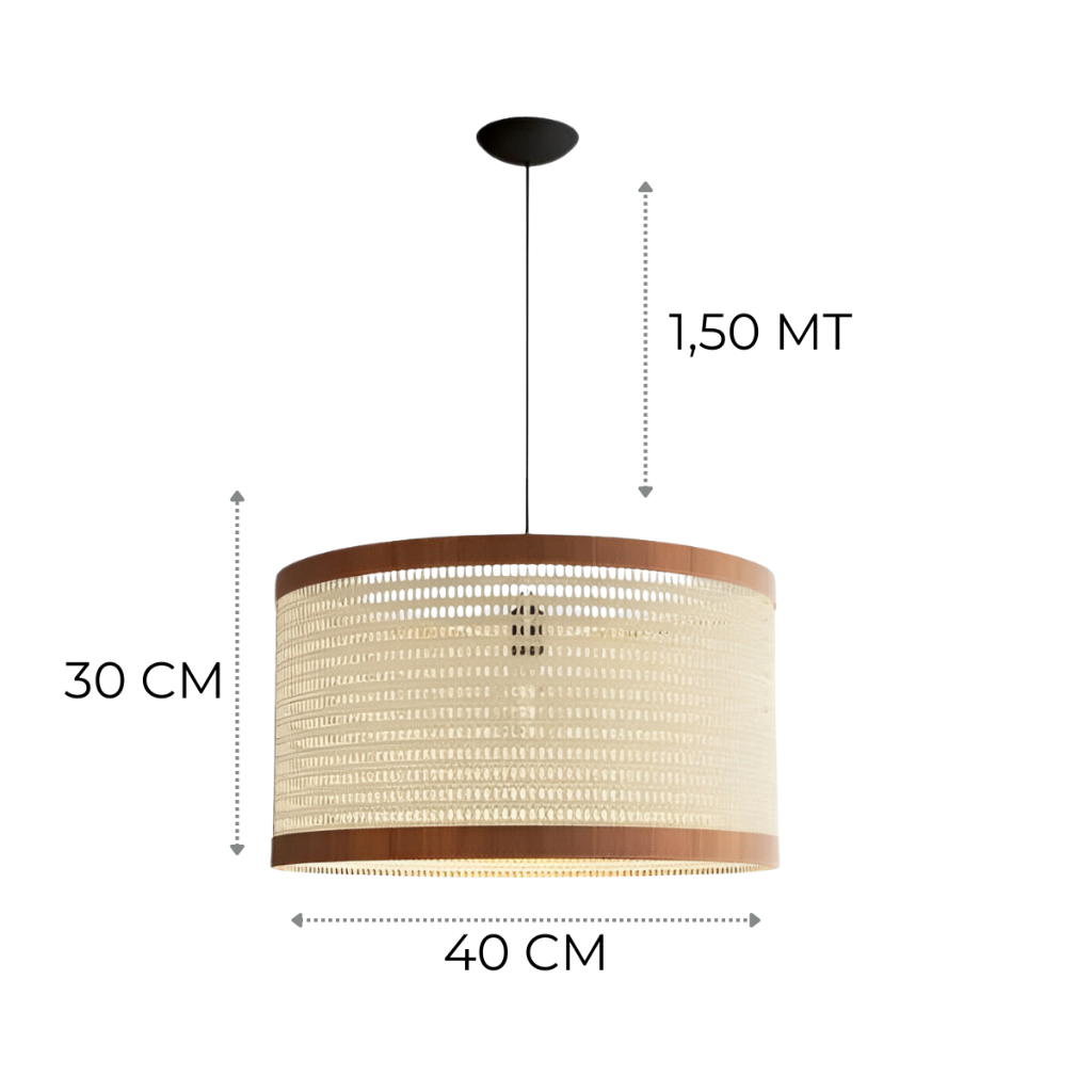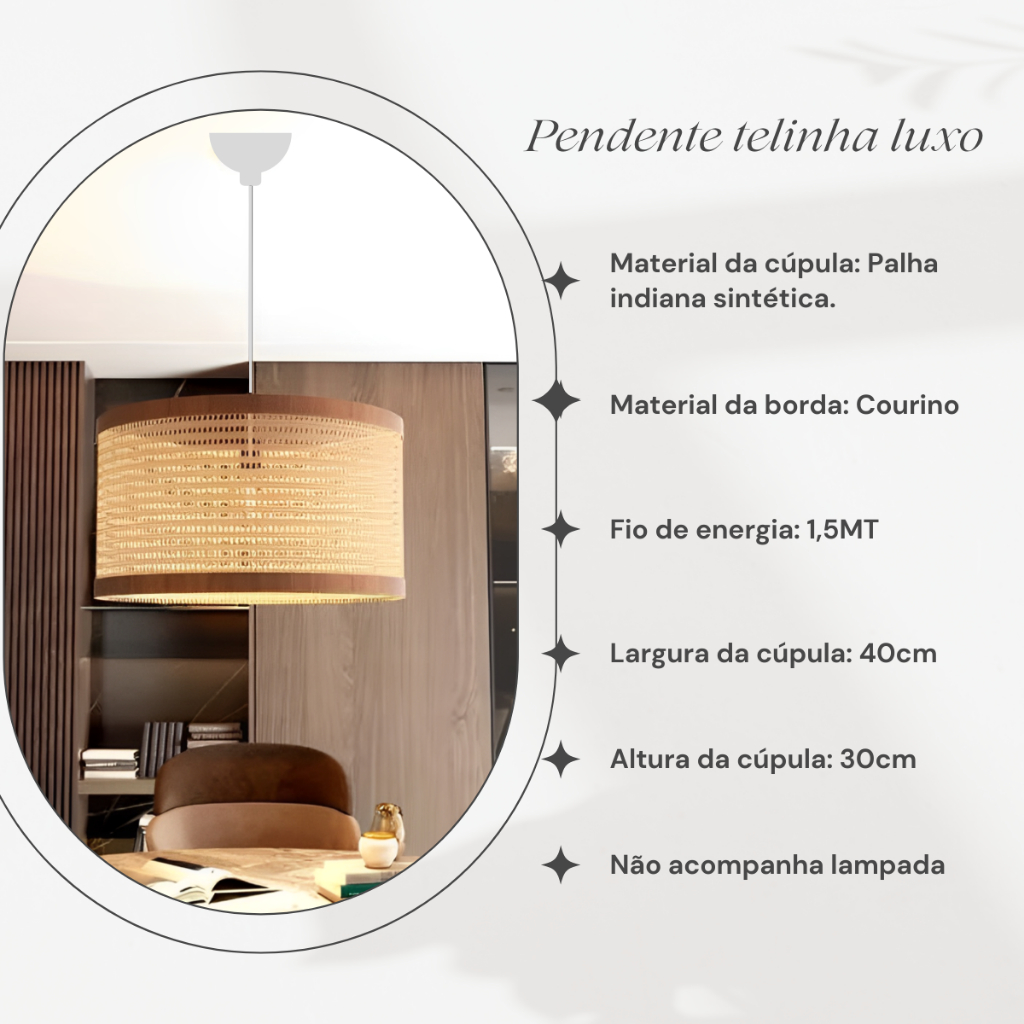 Pendente Luminária Tela Palha Indiana Retrô Sala De Estar Jantar Cozinha Quarto 40cm