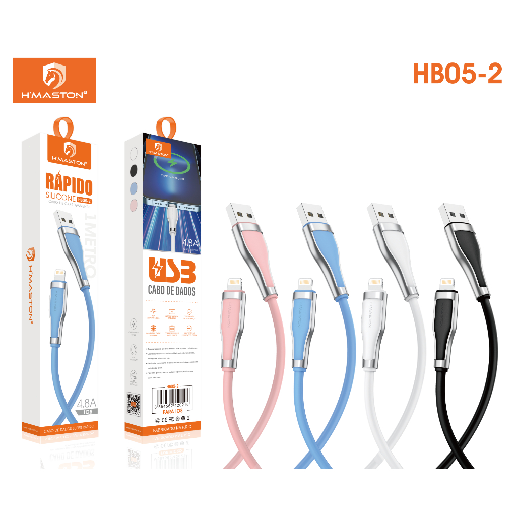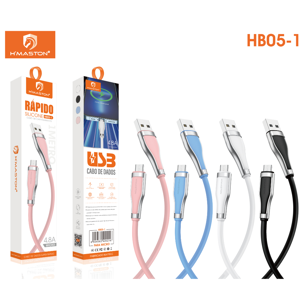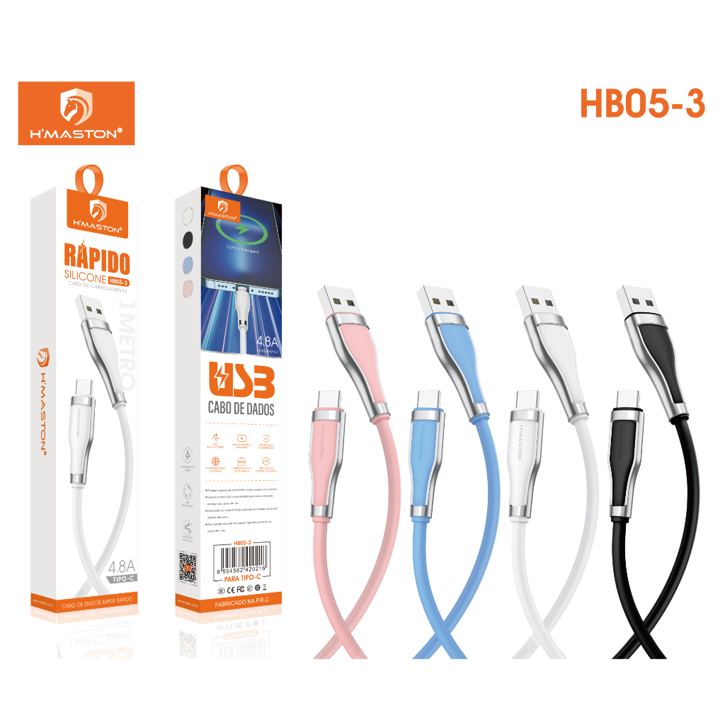 H'maston HB05 Cabo entrada V8 USB Tipo C IOS Cabo De Carga Super Rápida