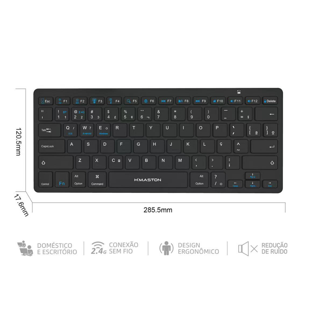 H'maston JP105 Teclado UltraFino Bluetooth Portátil Para Tablet Celular com TouchPad