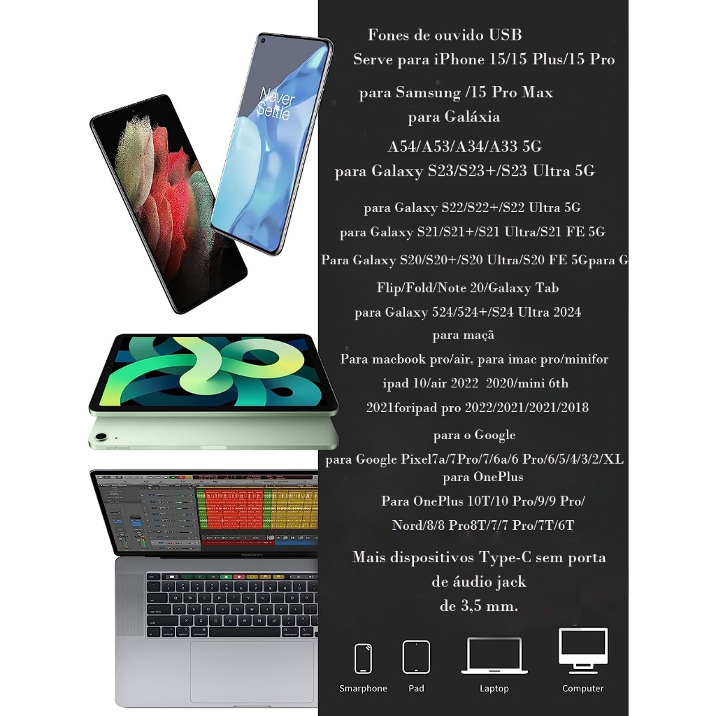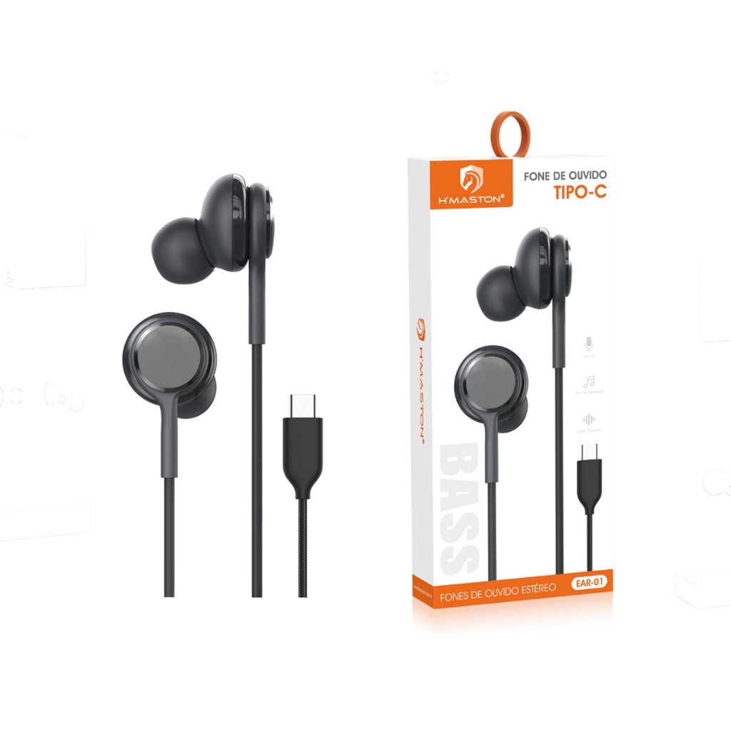 H'maston EAR-01 Fone de ouvido Tipo-c chamada de voz 1,2 metro para Samsung e PC