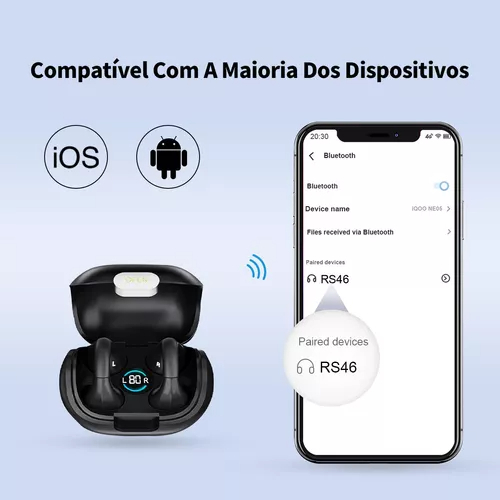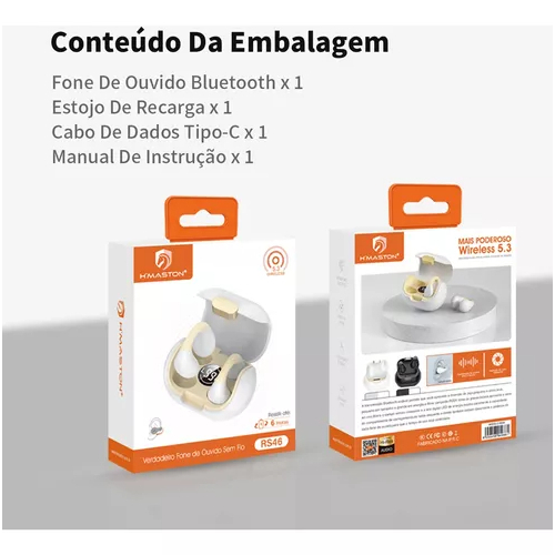 H'maston Rs-46 Fone Sem Fio Bluetooth 5.3 Tws Condução Óssea Com Led