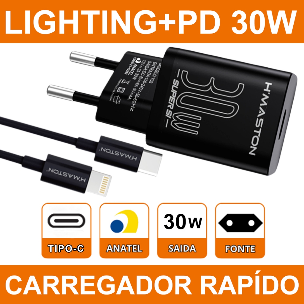 H'maston Y08 TURBO PD 30W QC 3.0 TIPO C Lightning Carregador