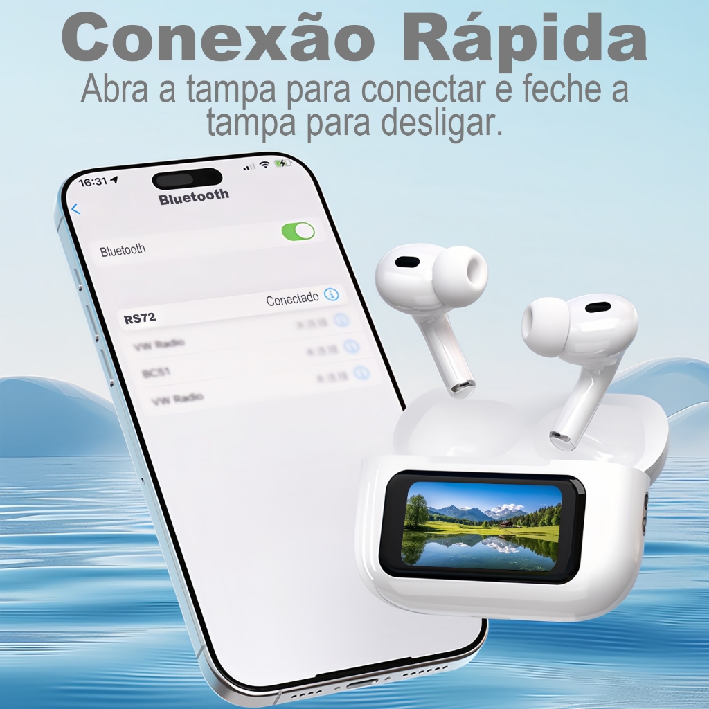 H'maston RS-72 Smart Touch Screen Bluetooth 5.4 TWS Ruído De Fones Sem Fio Com Viso Selfes Remotas