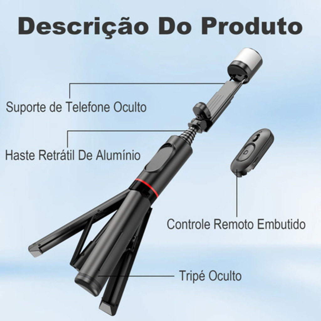 H'maston ZP-11 Bastão Pau De Selfie Celular Com Controles Remotos E Luz Led