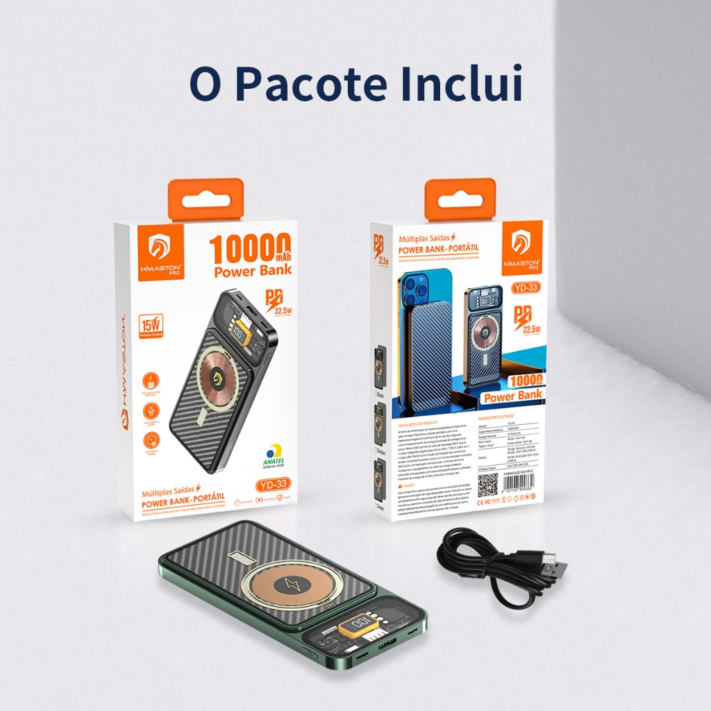 H'maston YD-33 Carregador Portátil Magnetico Power Bank 10000mah 15W Carregador Portátil Indução