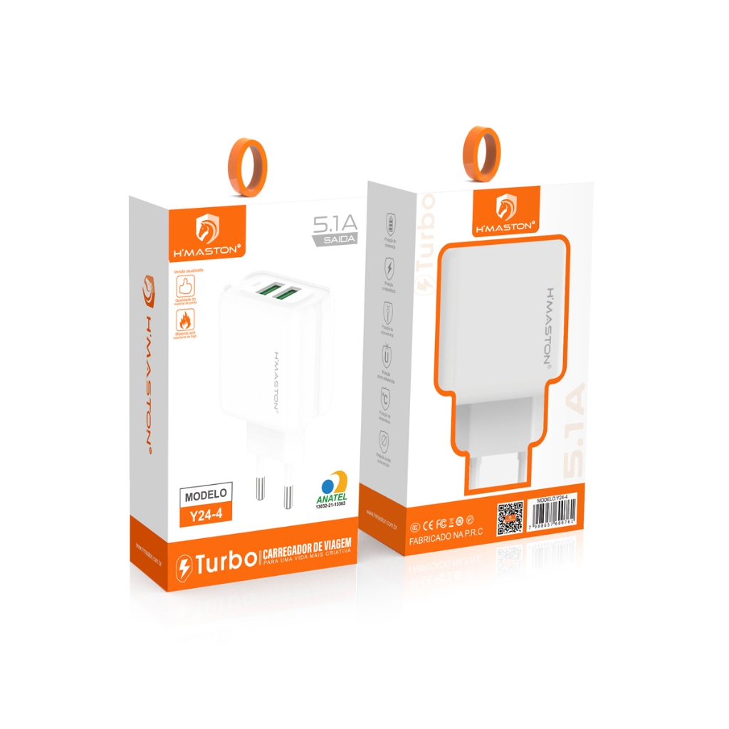 H'maston Y24-4 Carregador 25w Fonte Torre Carregar Celular Portátil 2 Usb 5.1A