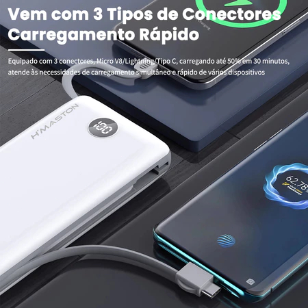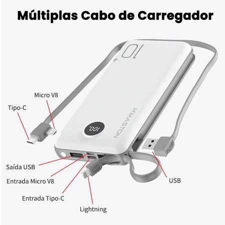 H'maston YD-20 Power Bank 10000mah 3.1A Bateria Portatil Carregamento Rápido com 4 Cabo