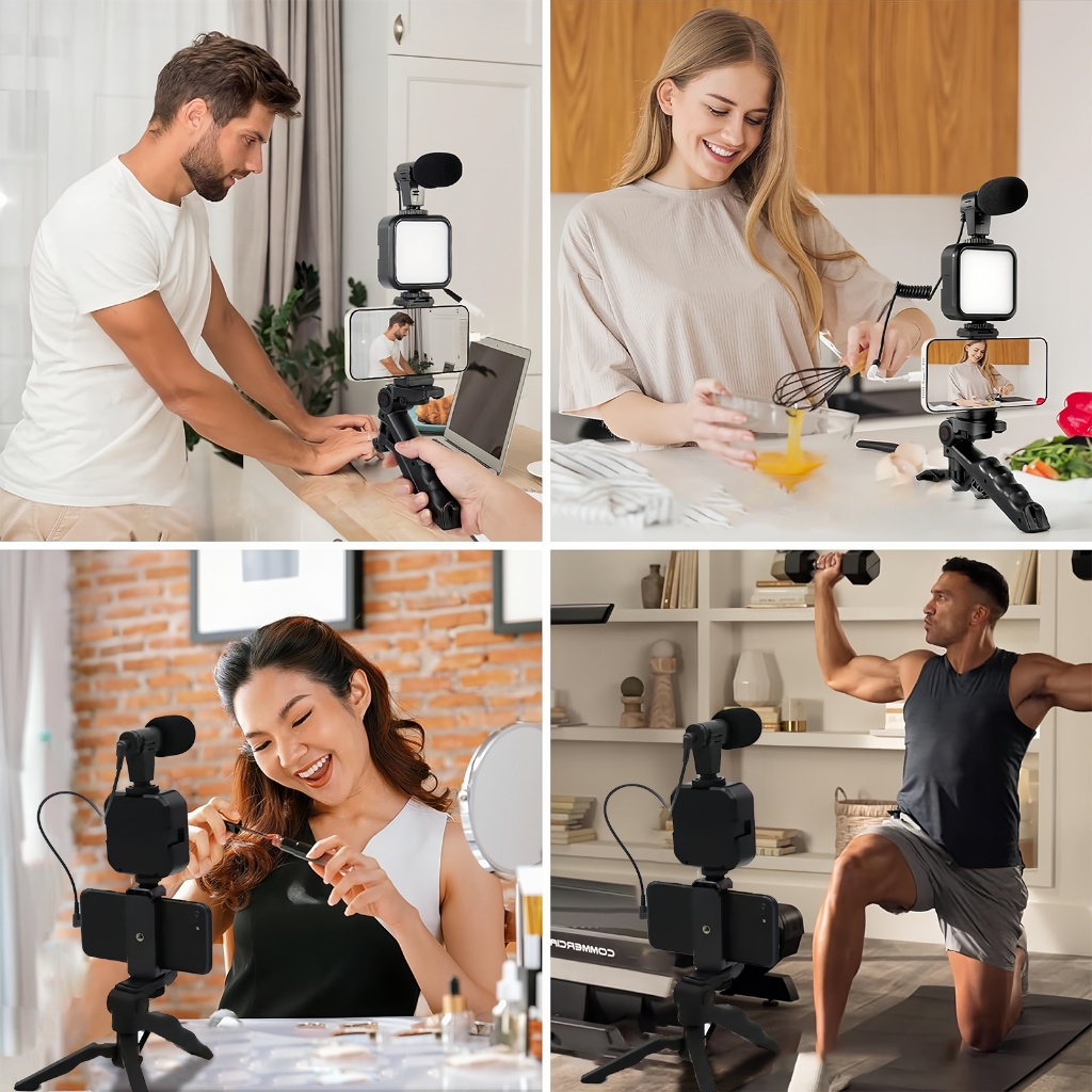 H'maston ZB04 Kit De Vídeo Com Tripé Microfone Led Luz Suporte