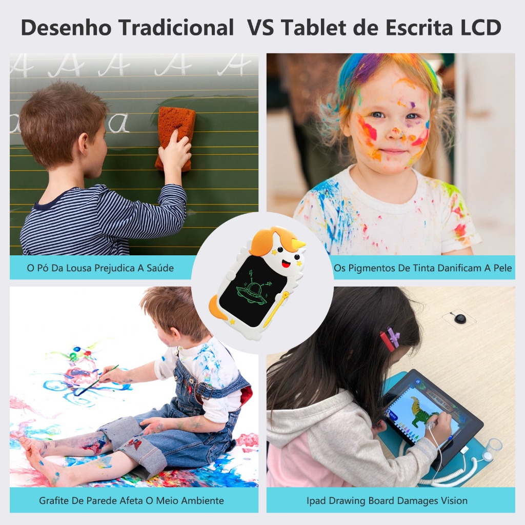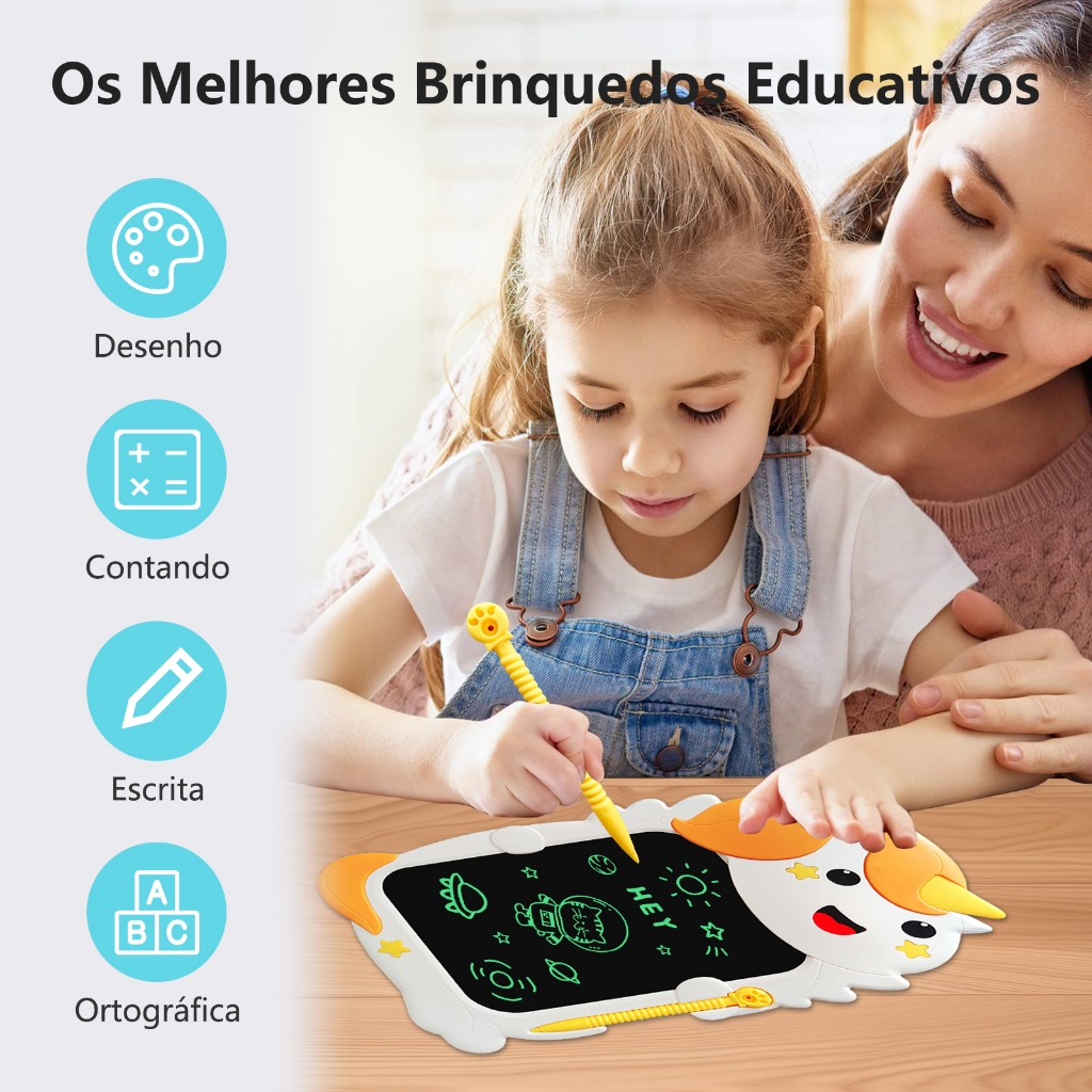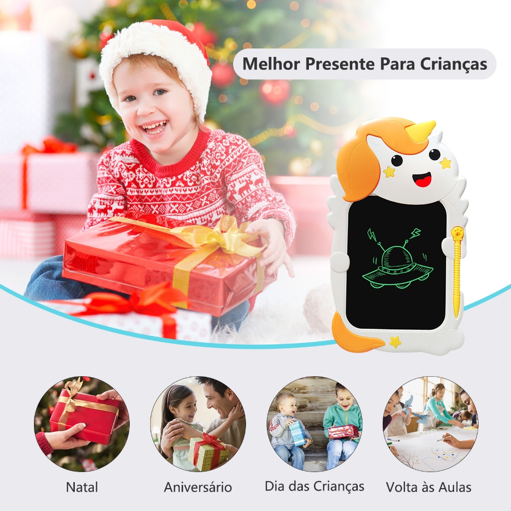 H'maston WT23 Lousa Mágica Infantil Digital Tela Lcd Com Caneta Magnetica unicórnio