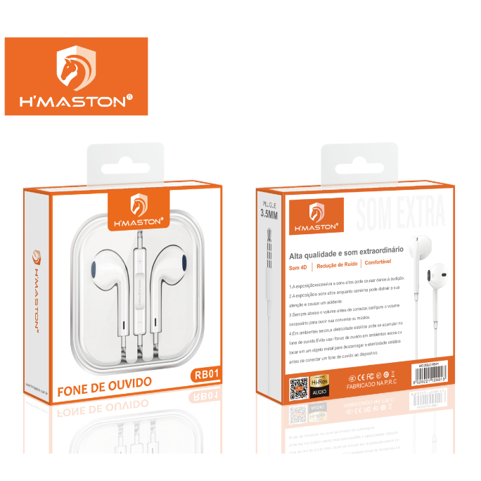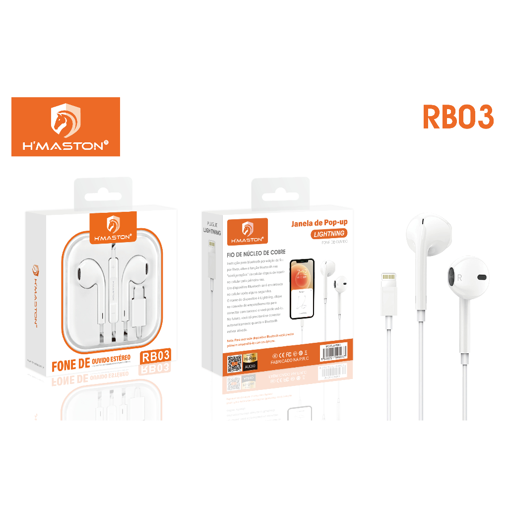 H'maston RB01/RB02/RB03 Fone de ouvido Branco Para Alto ótima/ todos android P2 OU TYPE-C/Lightning/P2