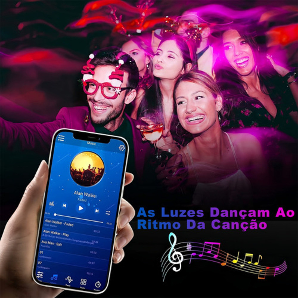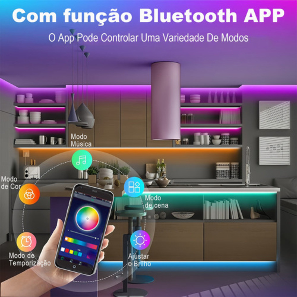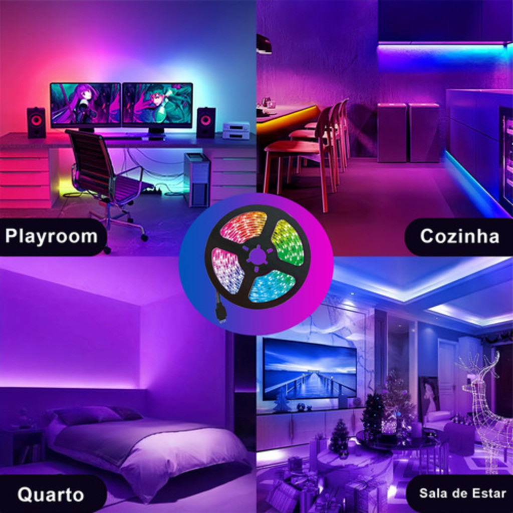 H'maston HFT-01 Fita De Led Colorida Neon 5 Metros Com Controlador Fonte App