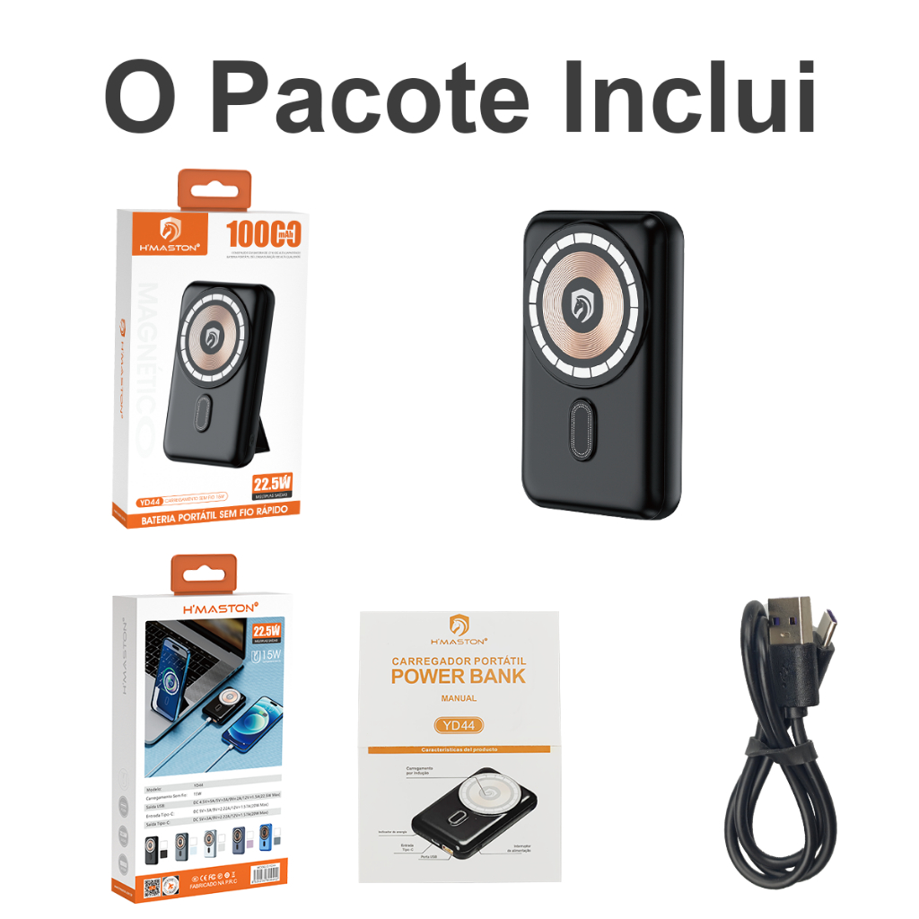 H'maston YD44 Power Bank Portátil Magsafe 10000mah Pequeno Indução com suporte para celular