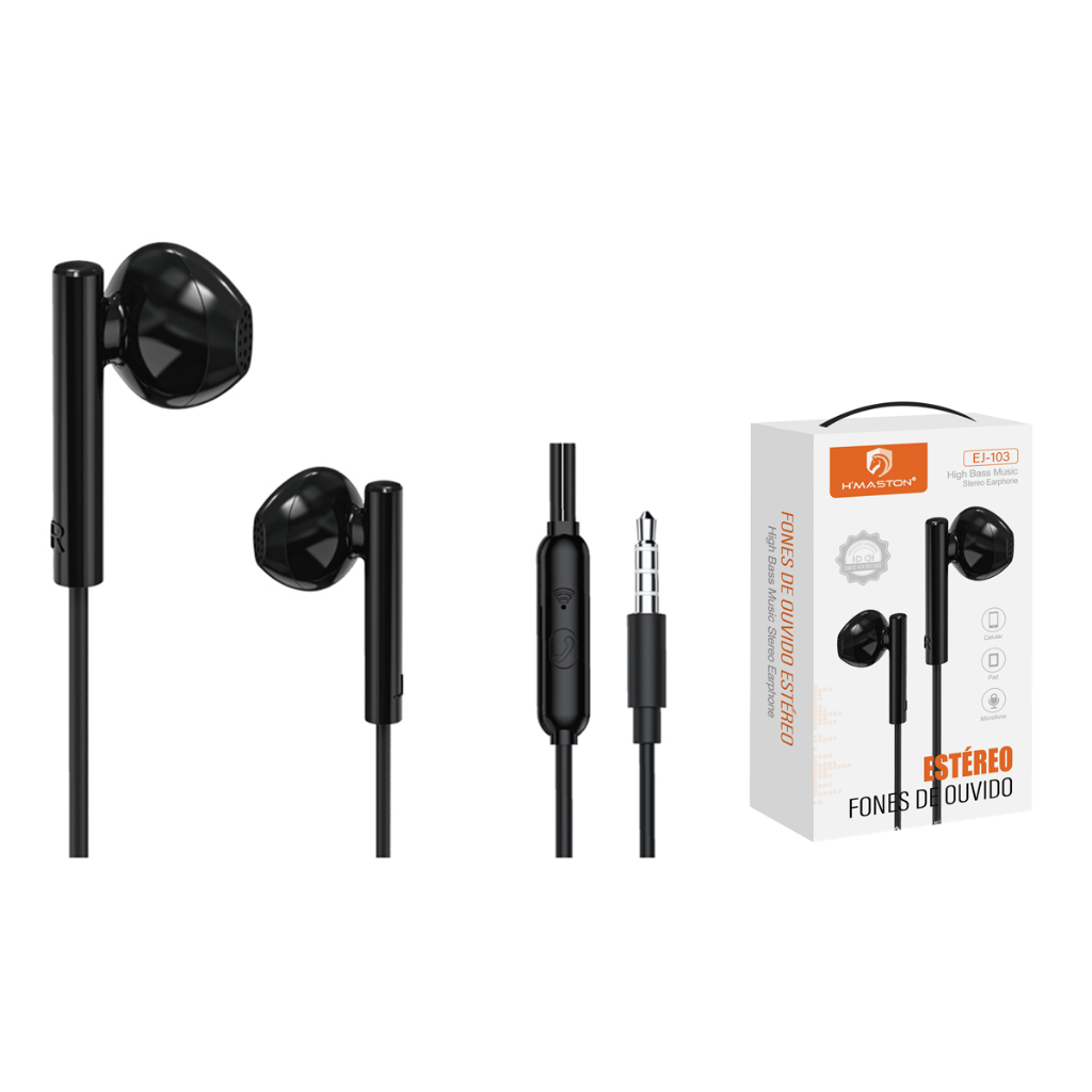 H'maston EJ-103 Fone Foninho De Ouvido Com Microfone Universal Fone De Ouvido Estéreo Fio