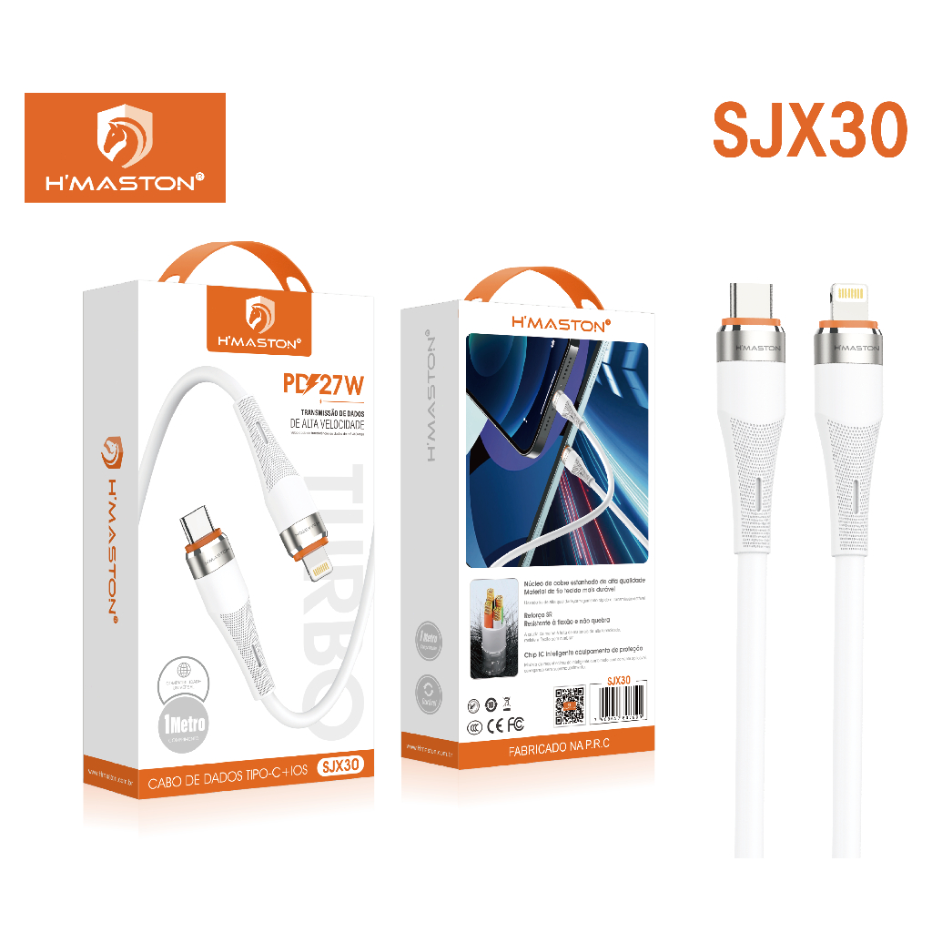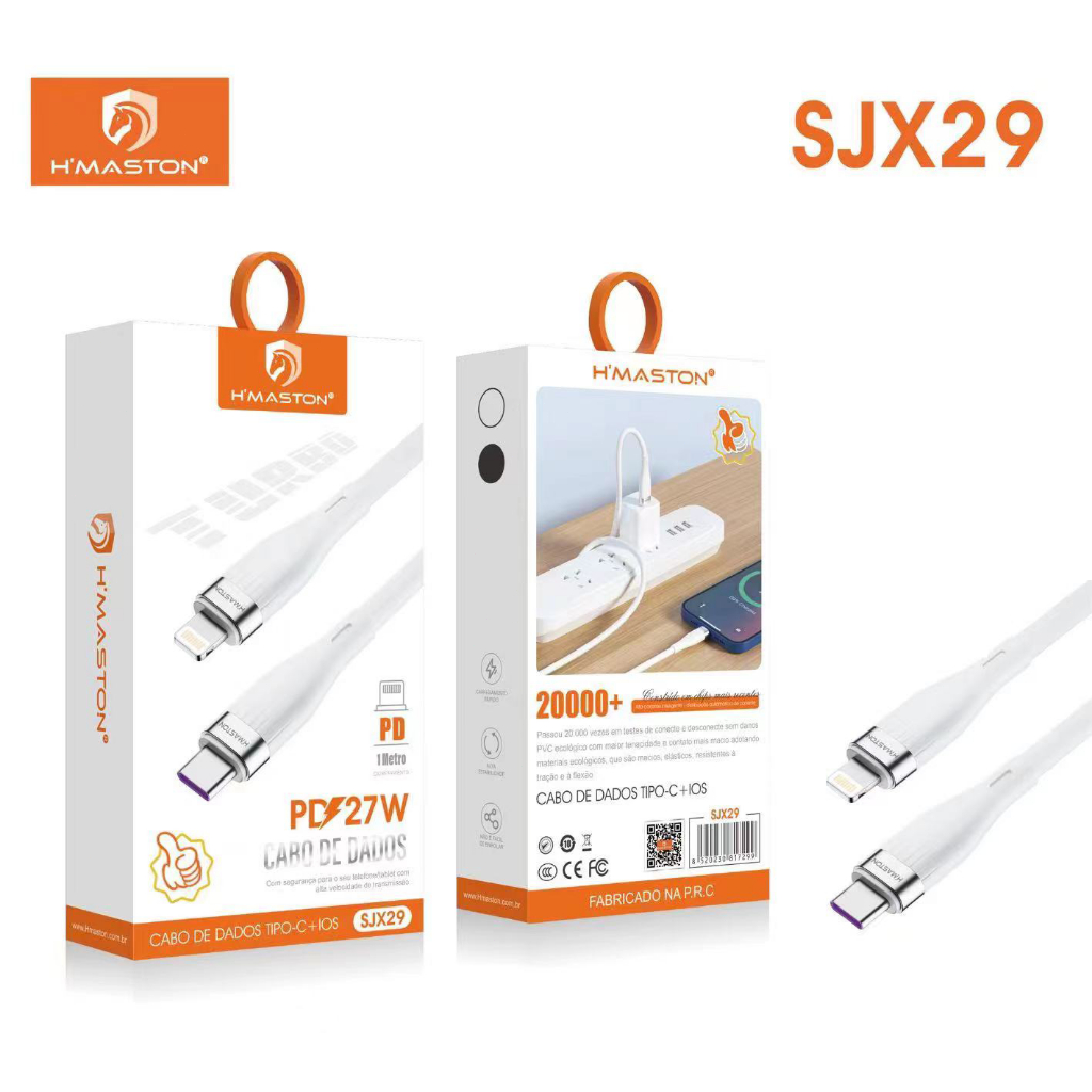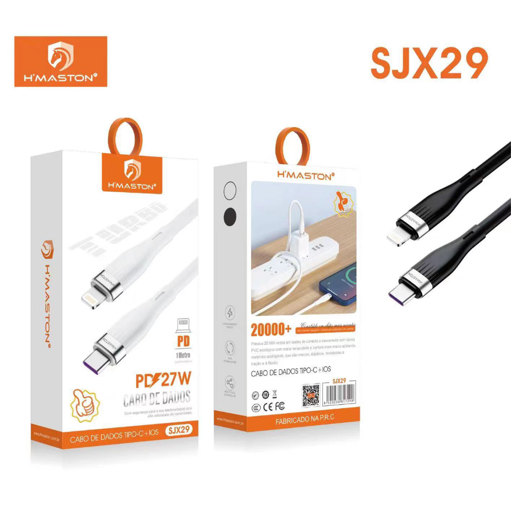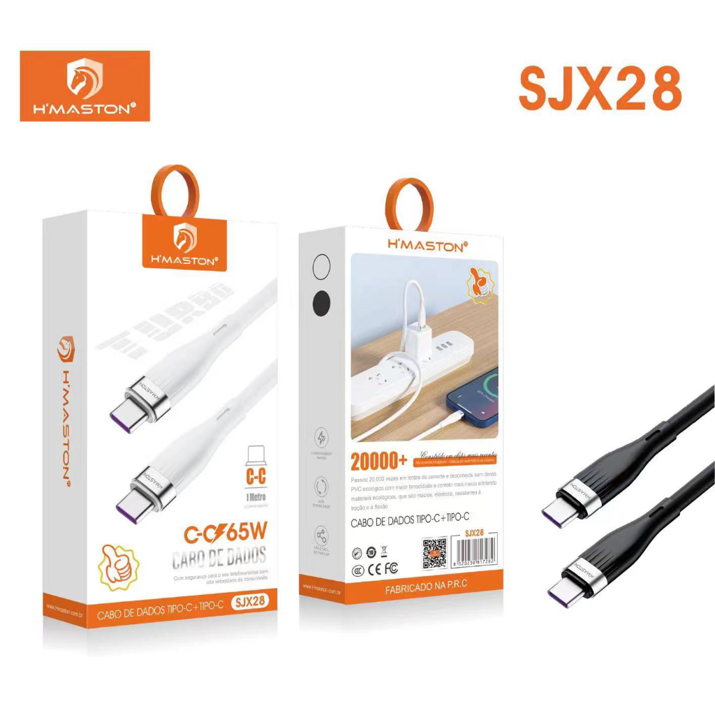 H'maston SJX28/29/30/31 Cabo Carregador Super Rápido Cabo Compativel ComEntrada Tipo-C E Tipo-C