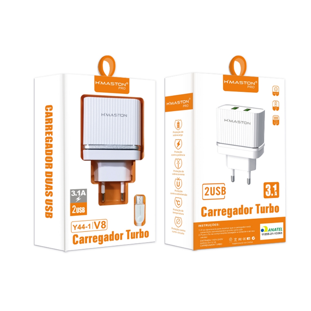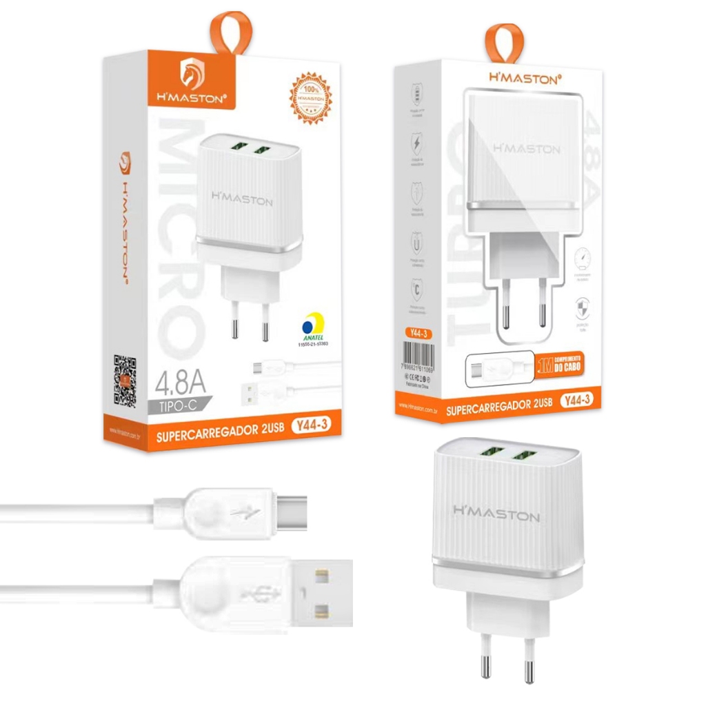 H'maston Y44 Fonte Carregador Turbo 4.8a 2 Usb Original V8 Tipo-c