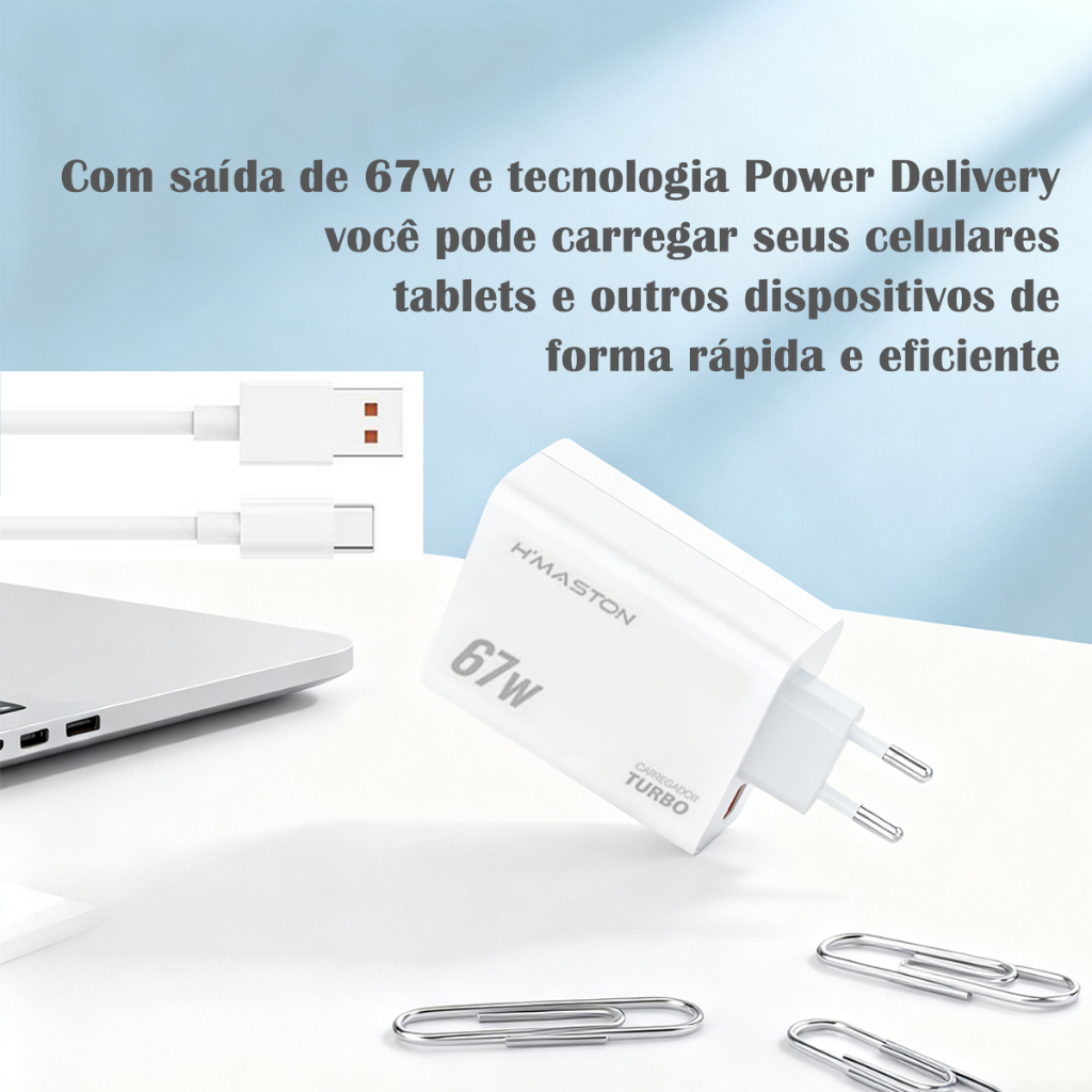 H'maston LR30-3 Carregador Turbo 67w Fonte Usb Cabo Tipo C Rápido Seguro Compacto USB-C