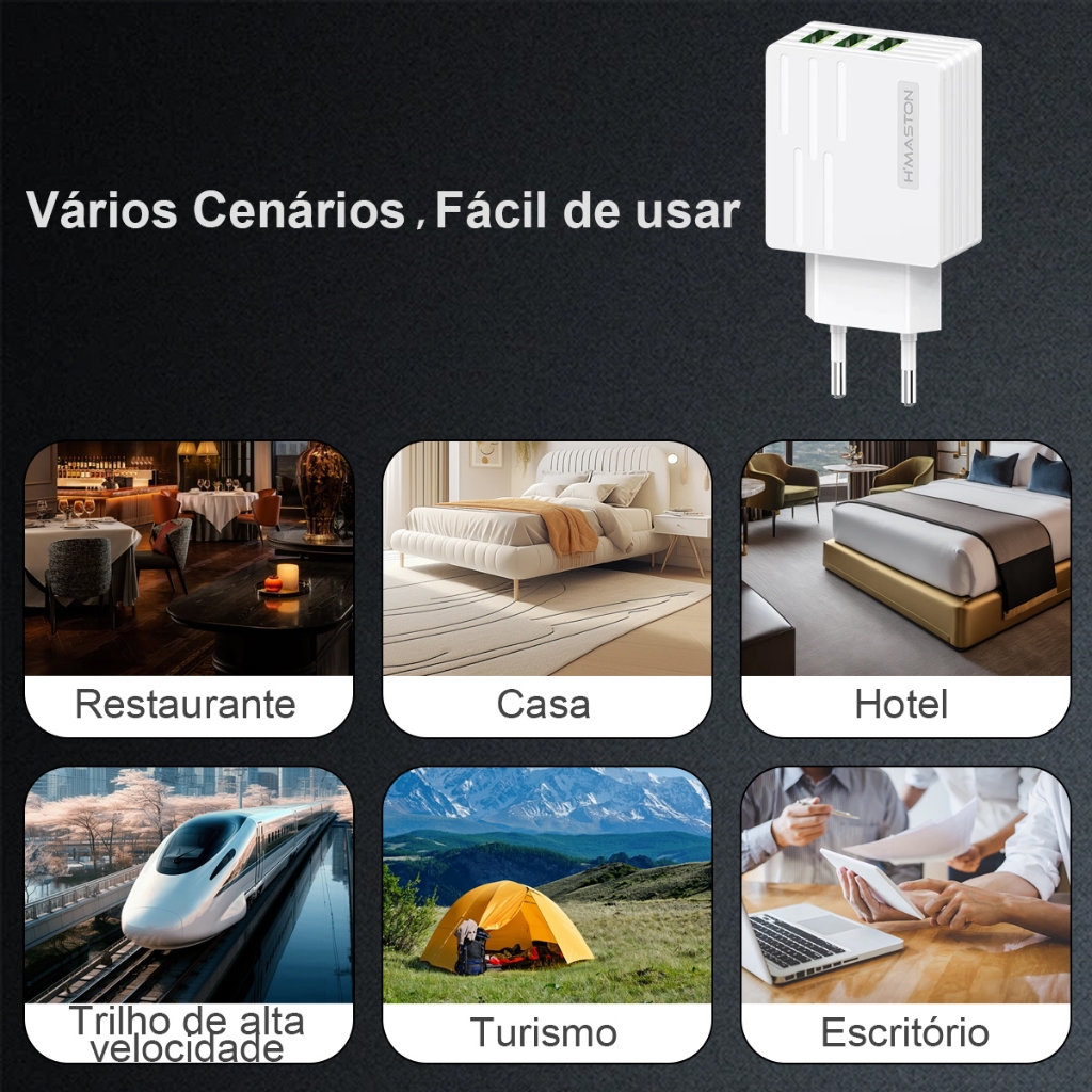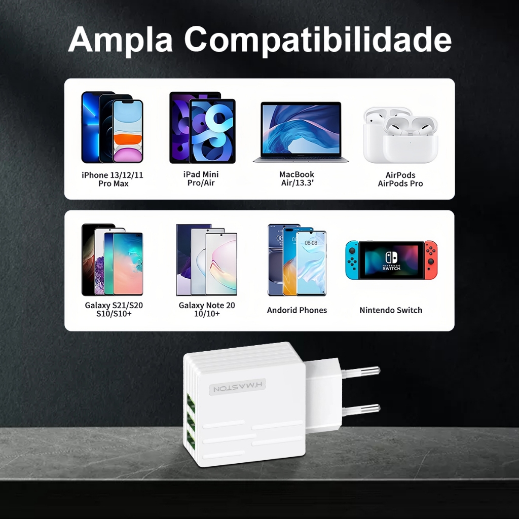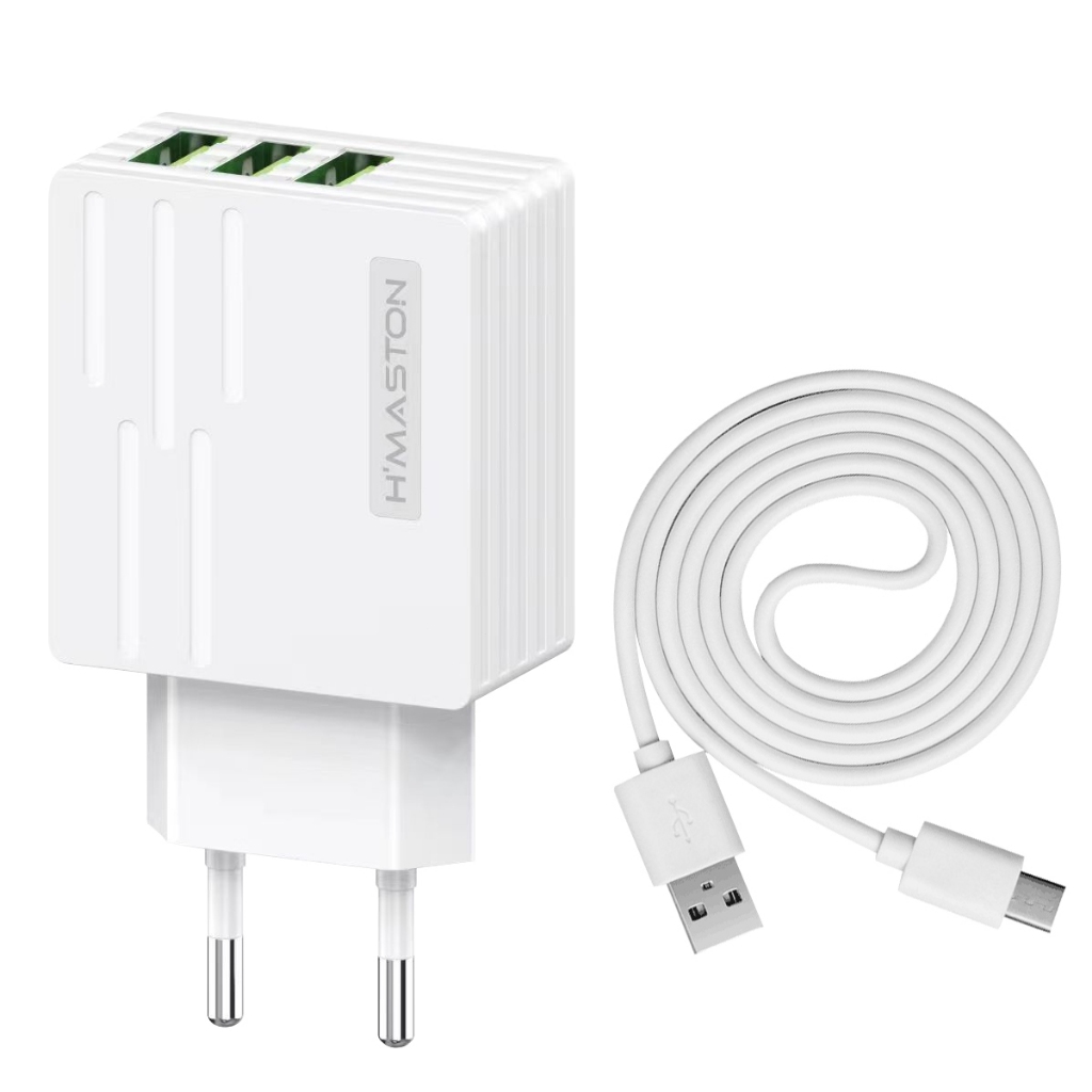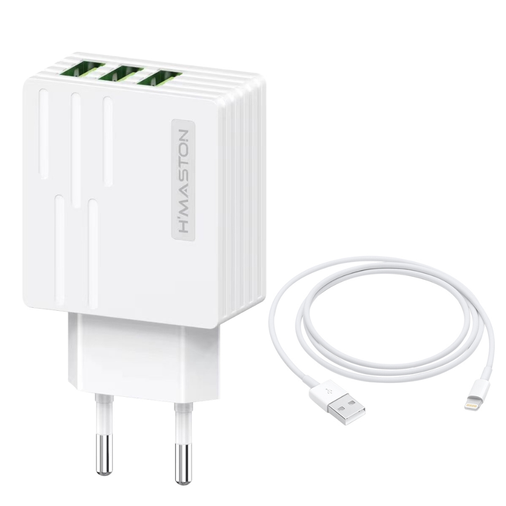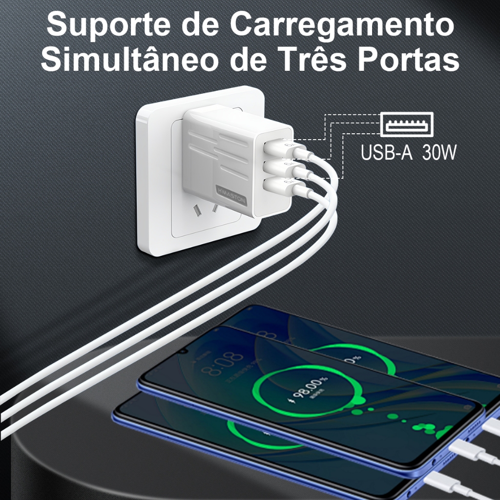 H'maston Y42 5.1A Turbo V8 Lightning/IOS Tipo-c Carregador 3 USB 1Metor