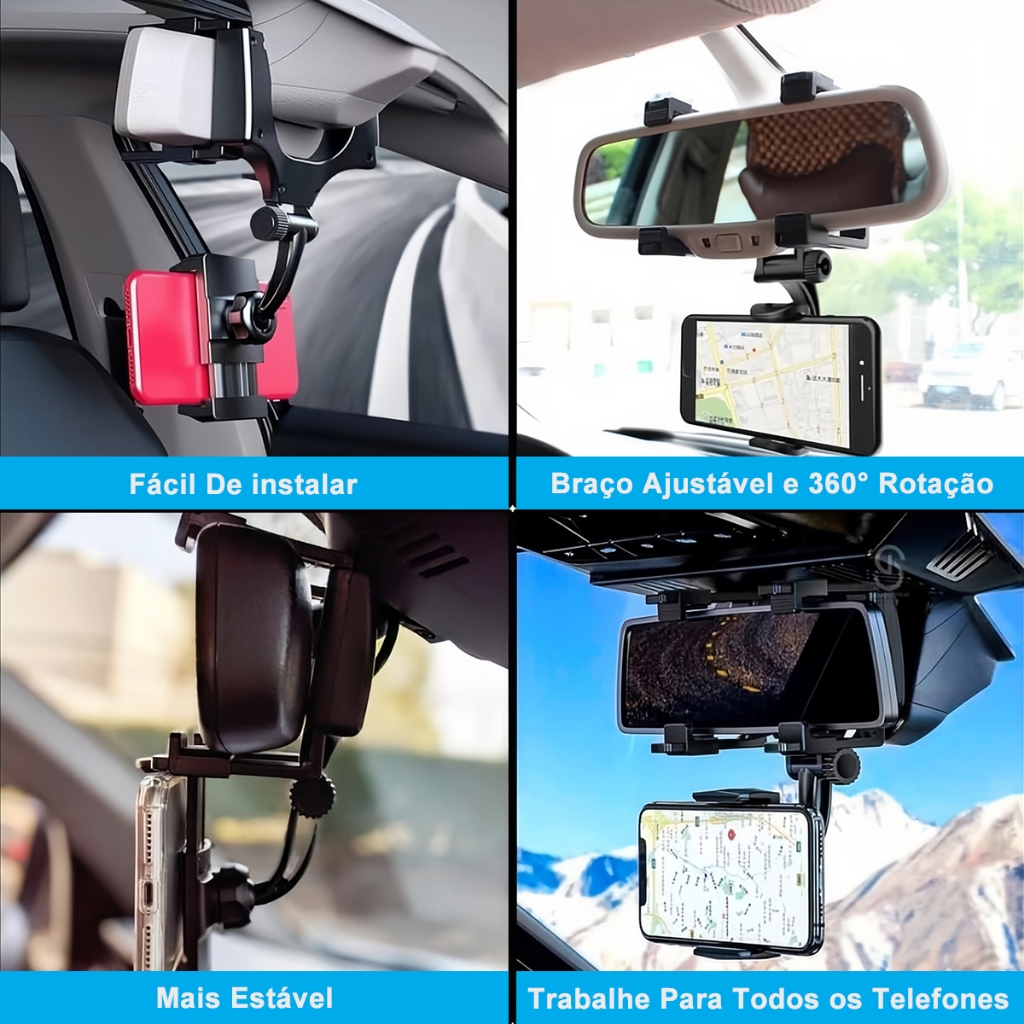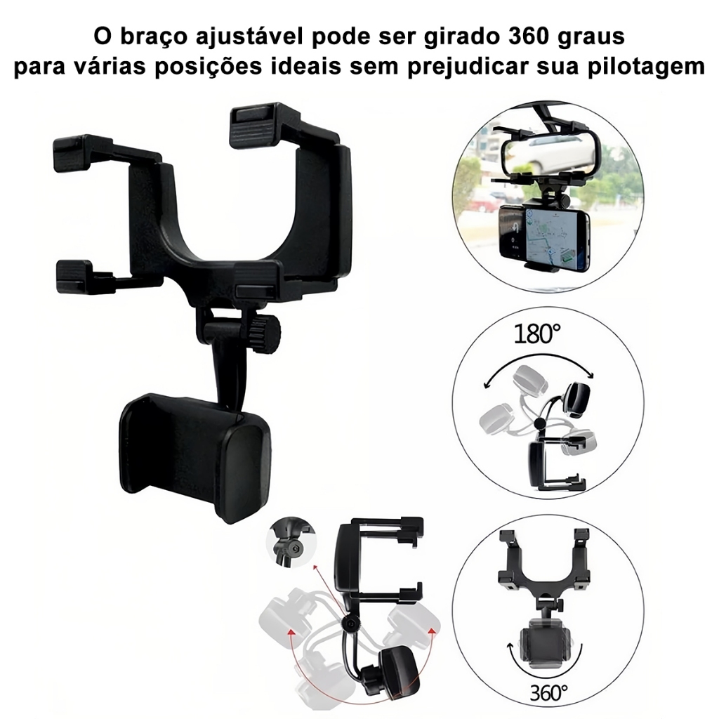 H'maston CJ-46 Suporte multifuncional para telefone móvel espelho retrovisor universal carro GPS 360
