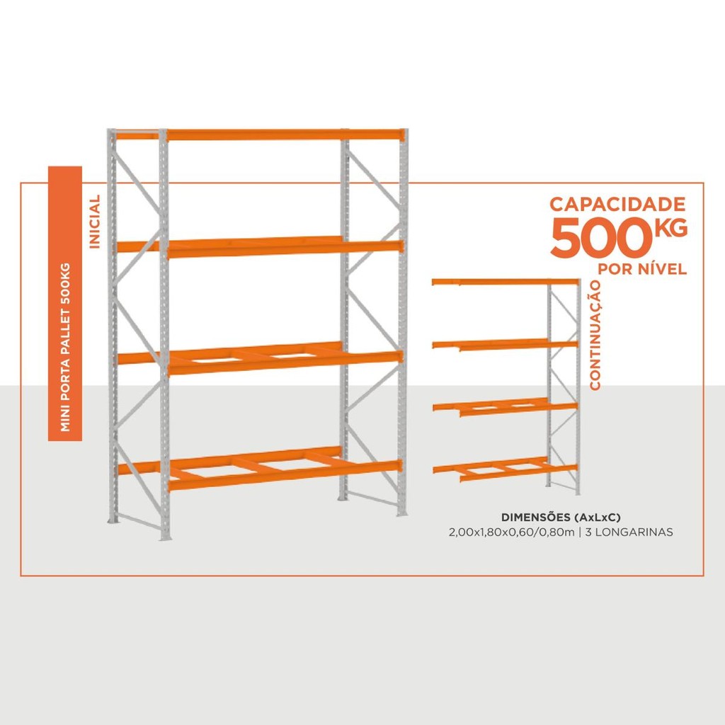 Porta Pallet 1500kg 1 Continuação 200x180x60 3 Níveis Sem Bandeja MPP500 Amapá