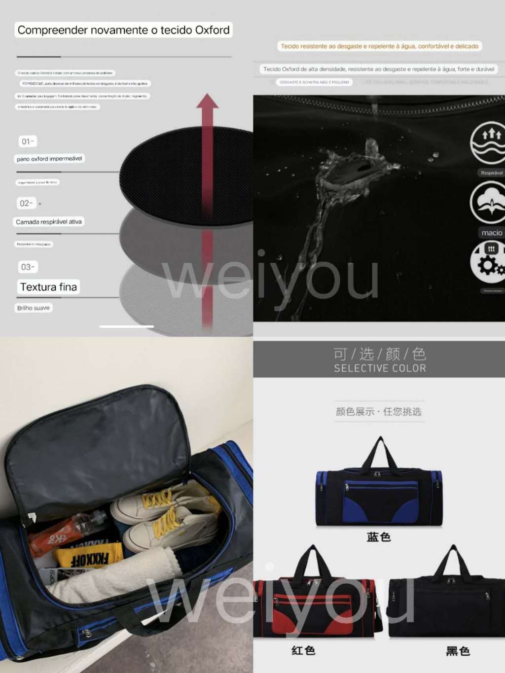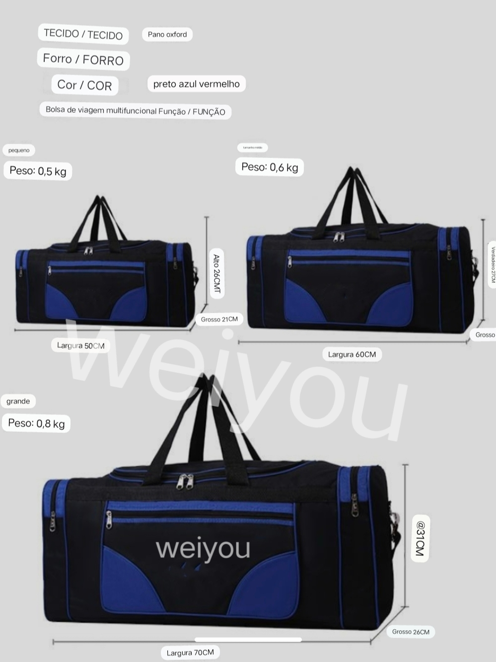 A bolsa de viagem é leve e pode ser usada por homens e mulheres